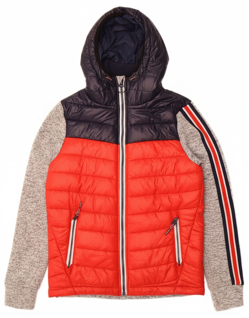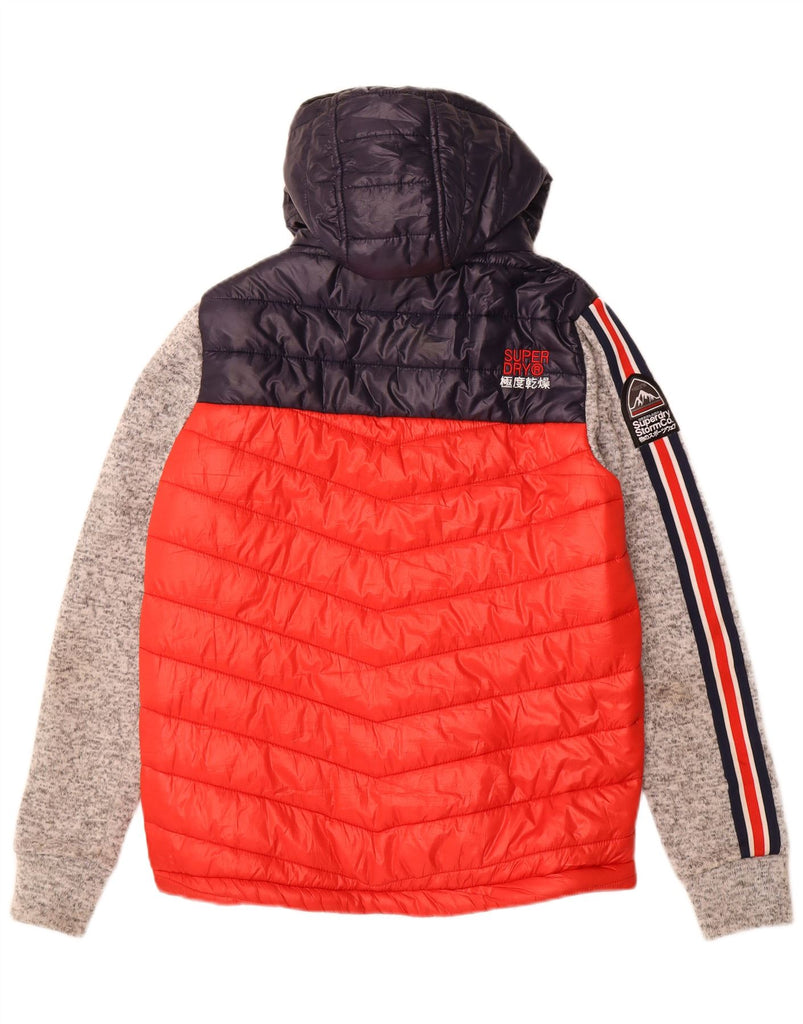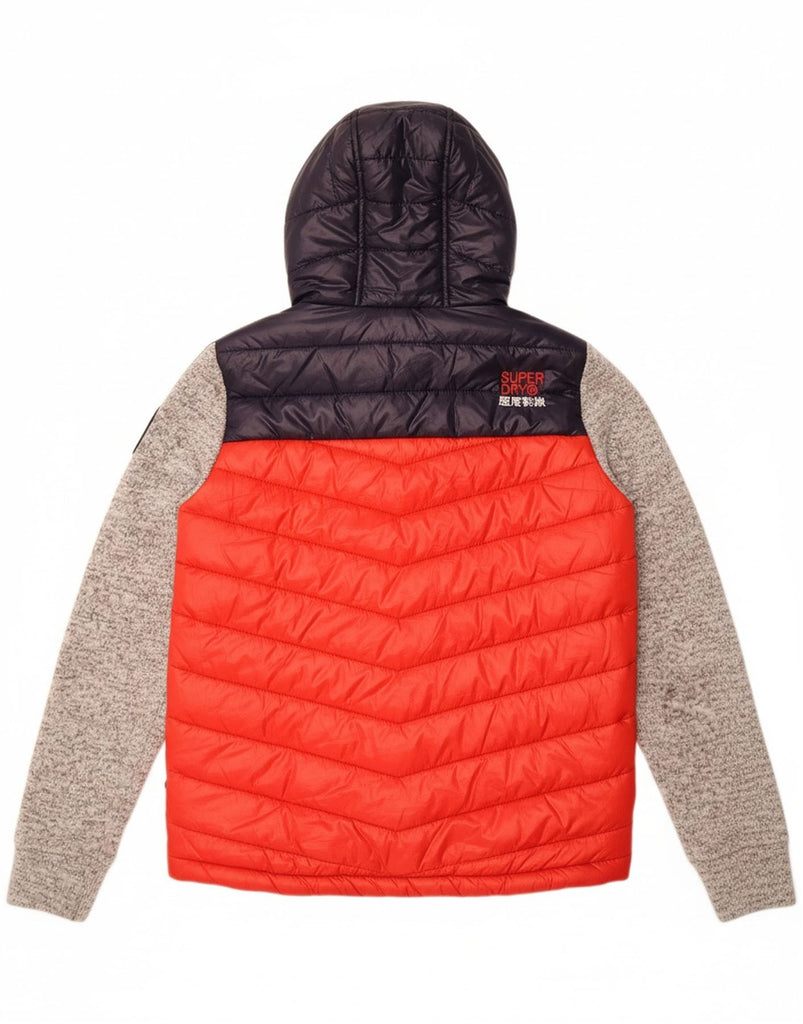 SUPERDRY Mens Hooded Padded Jacket UK 38 Medium Red Colourblock Polyester