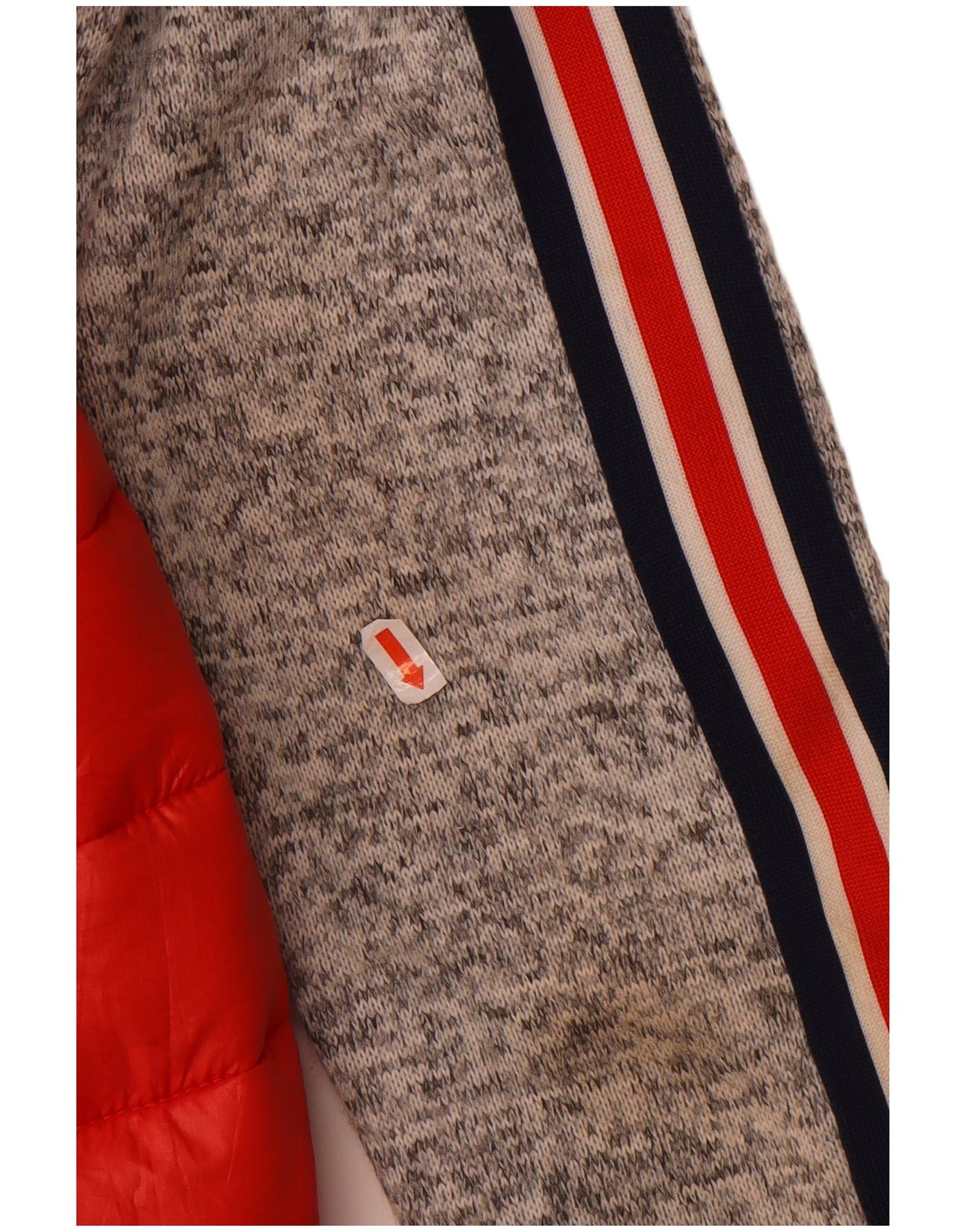 - AI Condition: Pre-owned | grade: Minor | location: On the left sleeve, near the front red panel. | type: Stains | grade: Minor | location: On the grey knitted fabric of the left sleeve. | type: Visible wear
