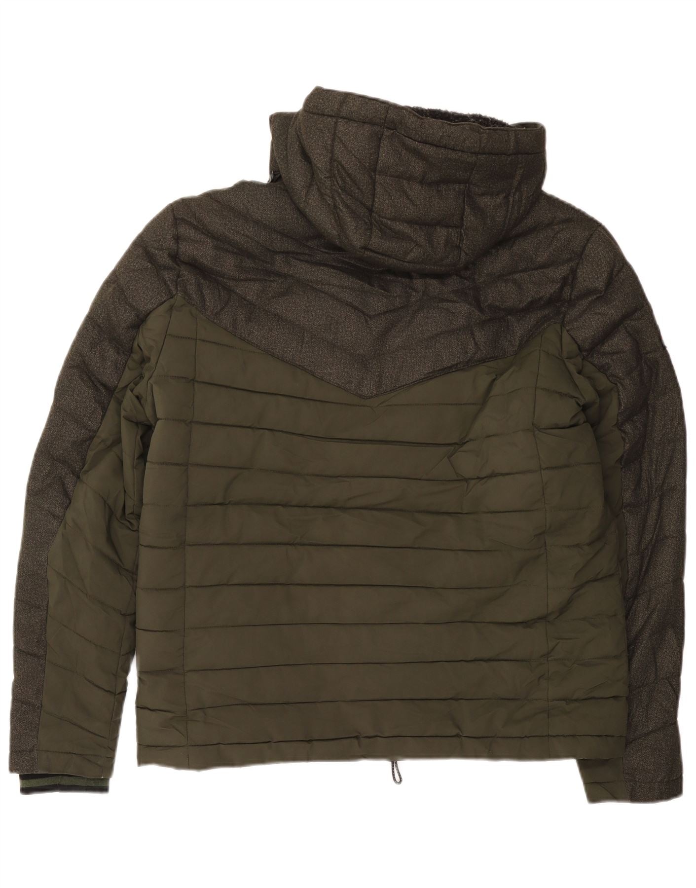 Giacca imbottita con cappuccio da uomo SUPERDRY UK 42 XL Poliestere color block kaki