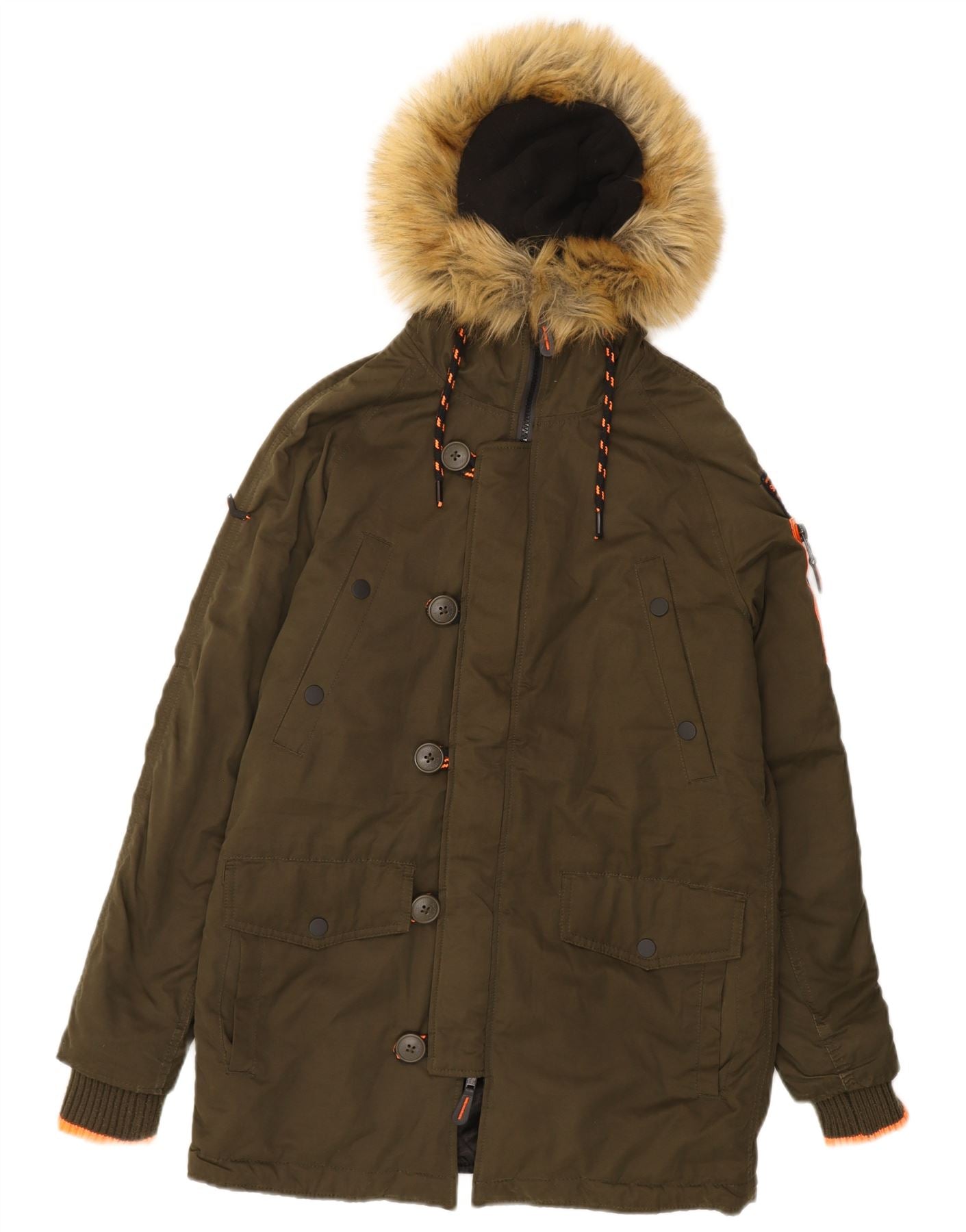 SUPERDRY Mens Hooded Padded Parka Jacket UK 36 Small Green Polyester