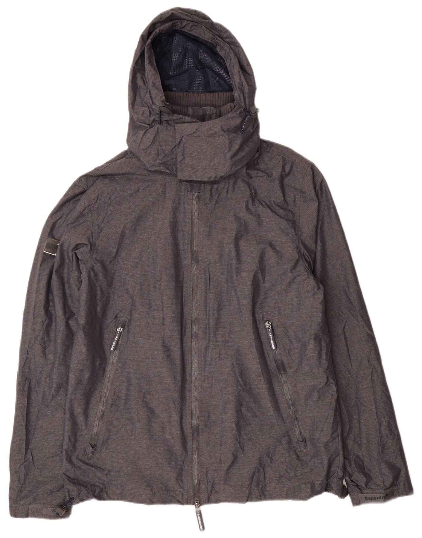 Giacca a vento con cappuccio da uomo SUPERDRY UK 40 Large in nylon grigio
