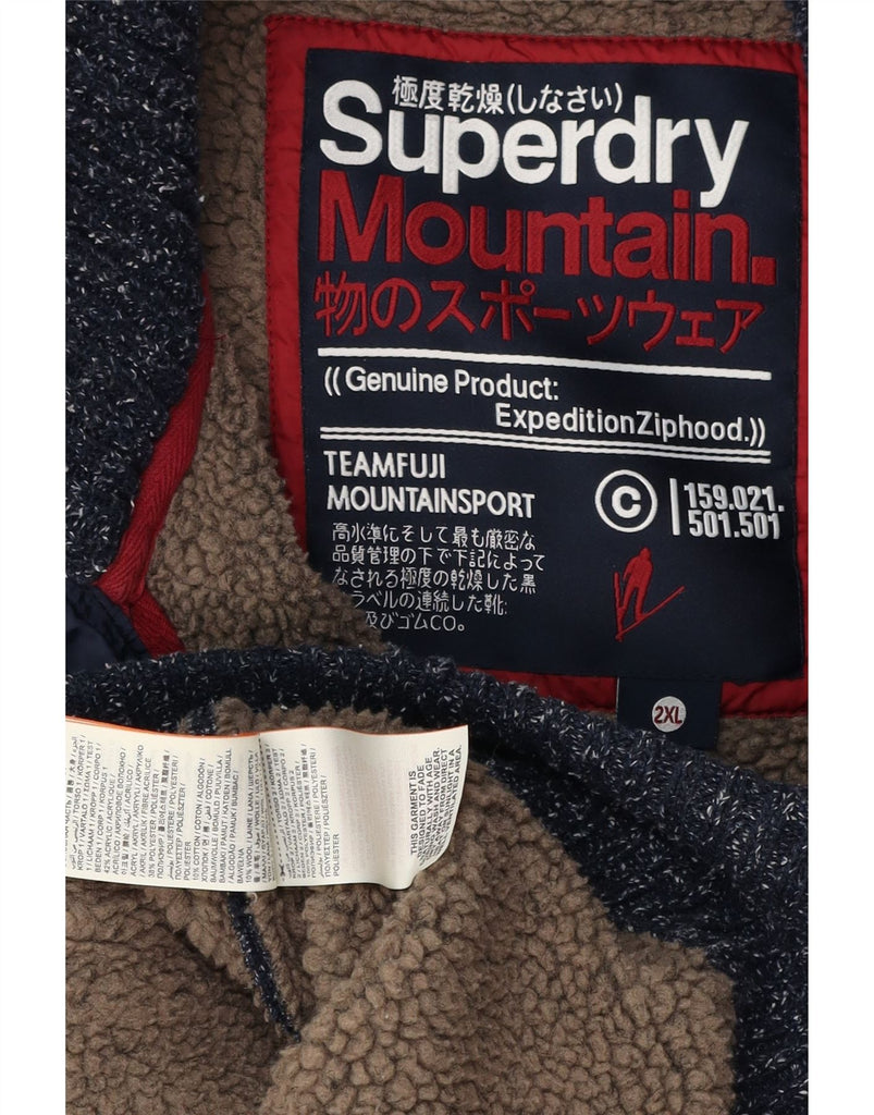 SUPERDRY Mens Knit Hooded Bomber Jacket 2XL Navy Blue Flecked Acrylic