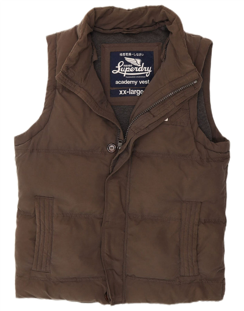- AI Description: This Superdry mens waistcoat is crafted from a durable woven fabric, featuring a distinctive quilted finish. Presented in a versatile brown, it boasts a classic collared neckline and a sleeveless design. A full zip closure ensures practicality, complemented by functional pockets. The padded construction offers warmth and comfort. A subtle button accent adds a refined touch to this regular fit garment, perfect for layering.