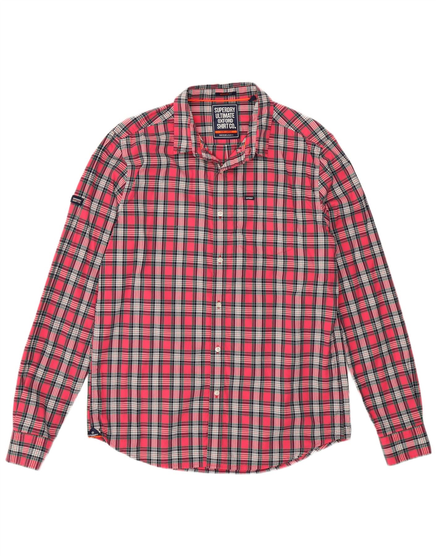 Camicia da uomo in flanella dalla vestibilità regolare SUPERDRY, cotone a quadri rosa grande