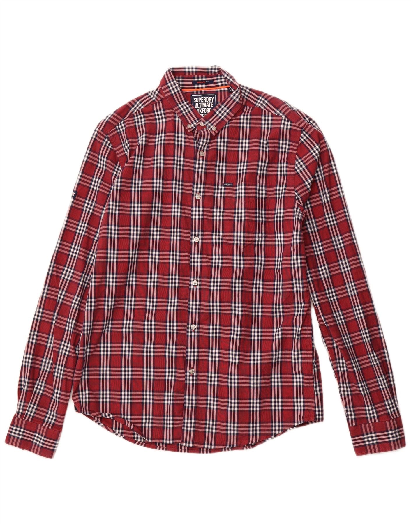 Camicia da uomo con vestibilità regolare SUPERDRY, cotone a quadri bordeaux grandi