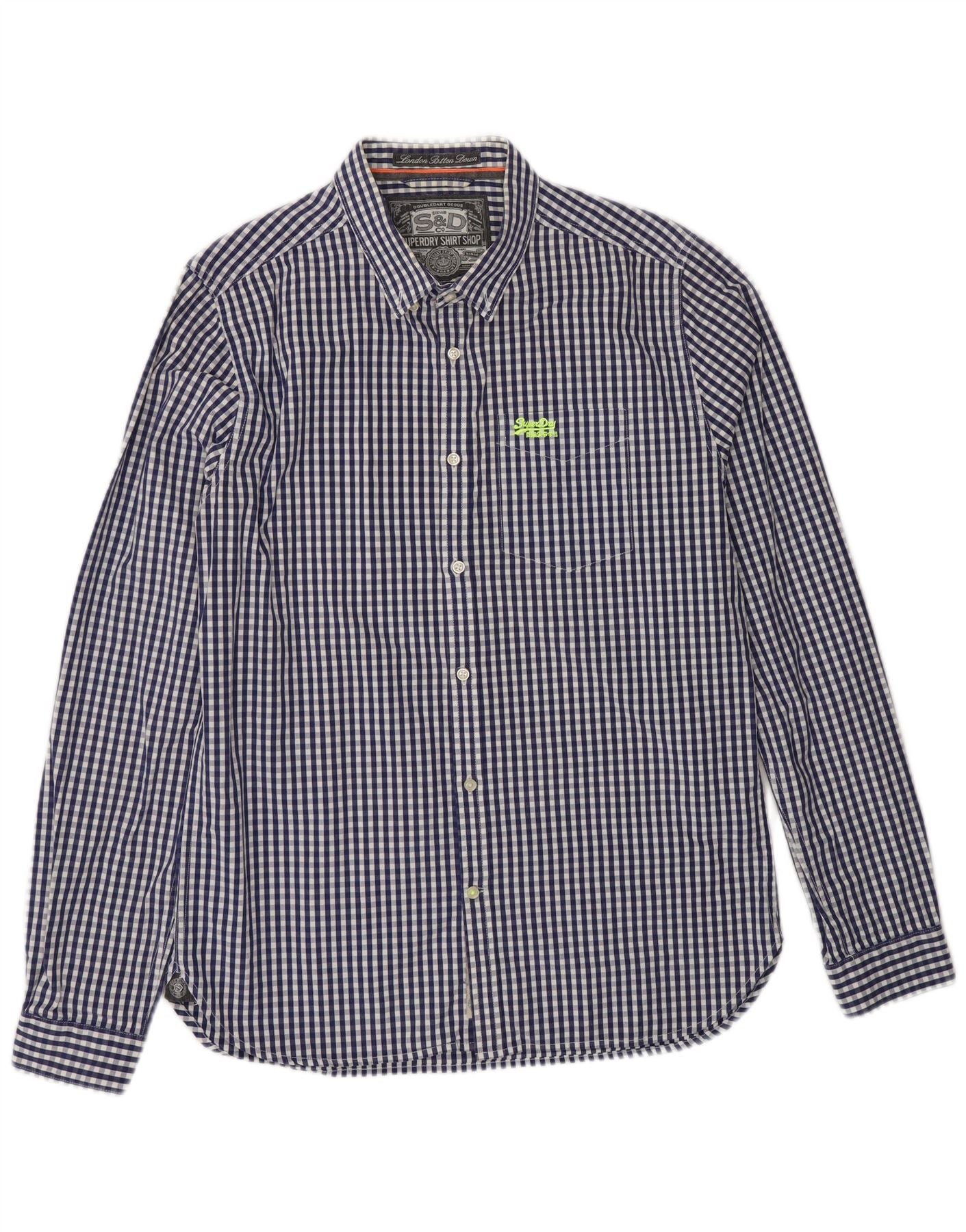 Camicia da uomo SUPERDRY grande in cotone a quadretti blu navy