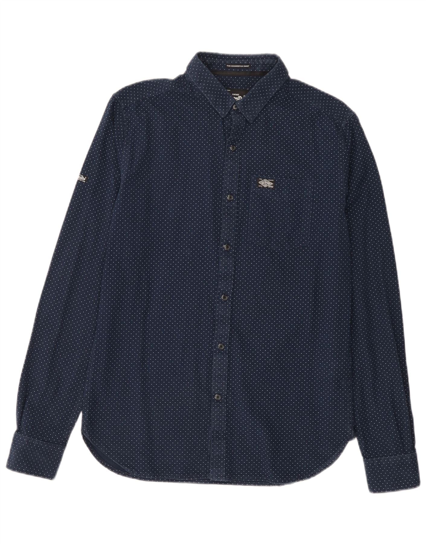 Camicia da uomo SUPERDRY in cotone maculato medio blu navy