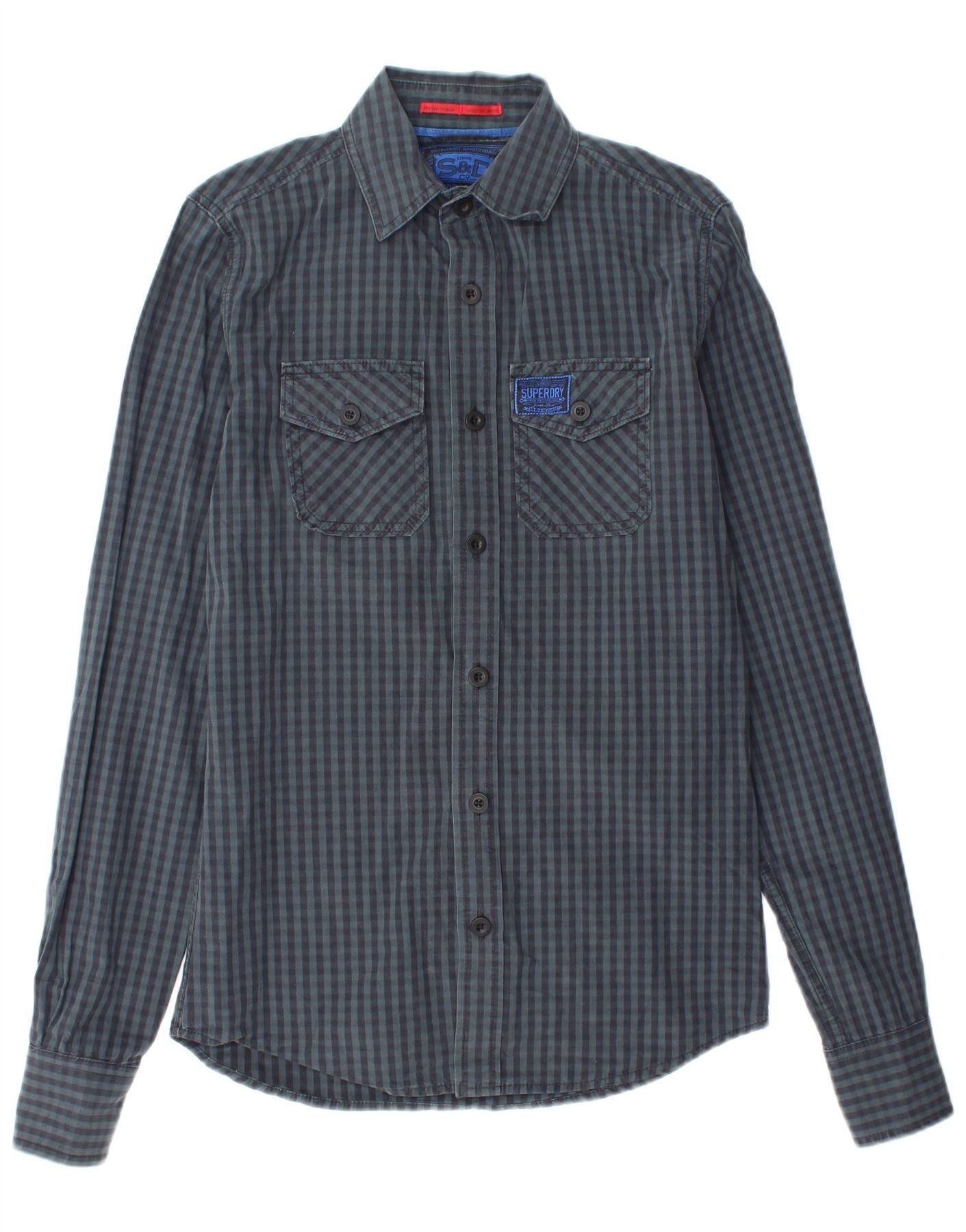 Camicia da uomo SUPERDRY piccola in cotone a quadretti blu navy