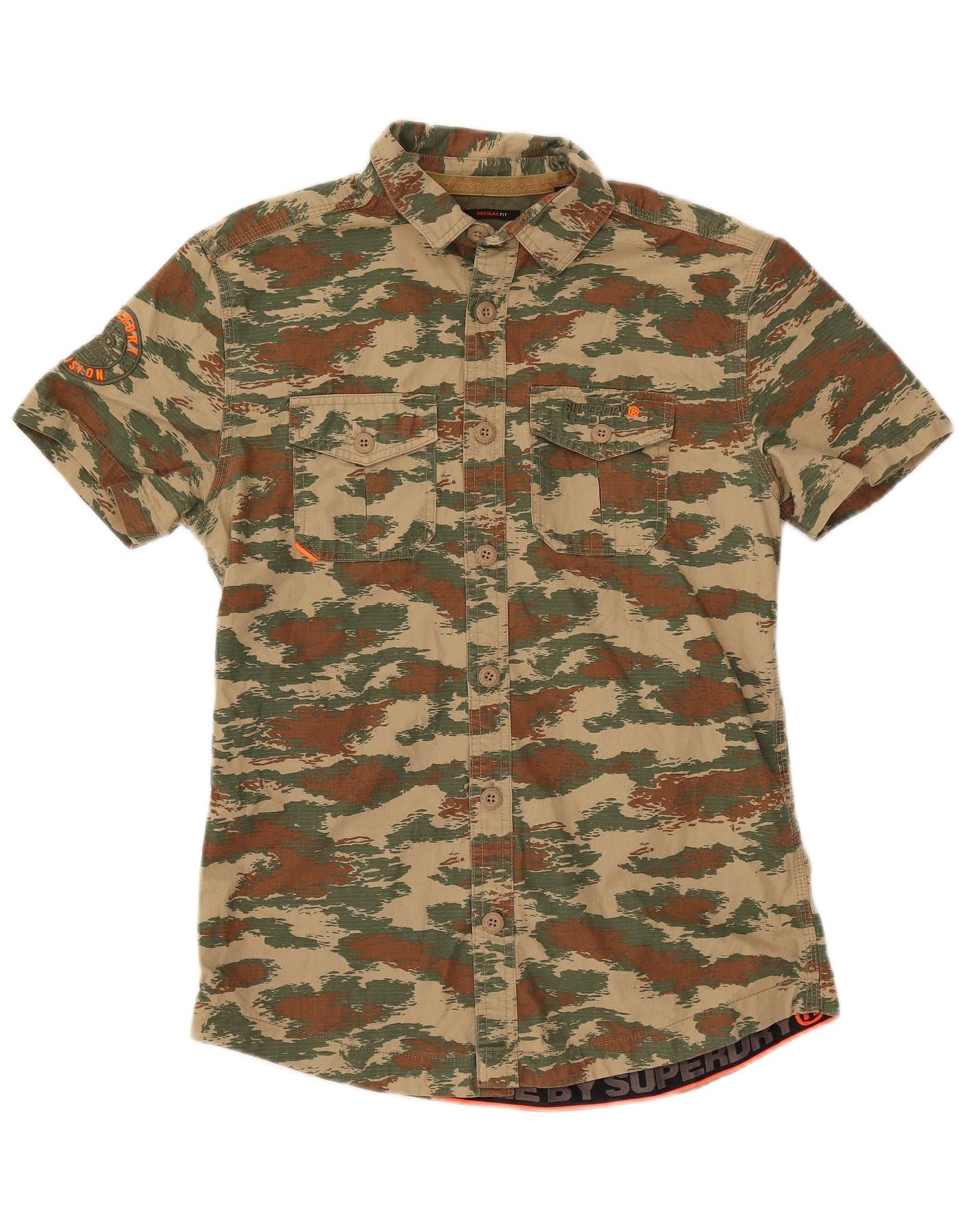 Camicia da uomo a maniche corte con vestibilità regolare SUPERDRY, in cotone mimetico kaki piccolo