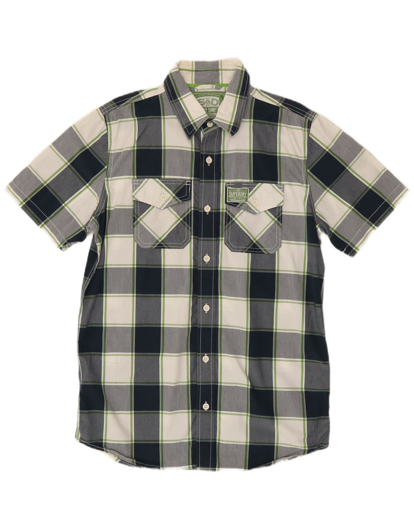 - Descrizione dell'IA: Questa camicia da uomo Superdry è realizzata al 100% in cotone, caratterizzata da una trama intrecciata. Presenta un caratteristico motivo a quadri in blu navy, bianco e verde. Lo scollo con colletto e l'abbottonatura frontale offrono un fascino classico ed elegante. Le maniche corte e la vestibilità regolare garantiscono un'usura confortevole. Le doppie tasche sul petto con chiusura a bottone aggiungono dettagli pratici. Questa camicia combina uno stile tradizionale con un'estetica fresca e moderna.