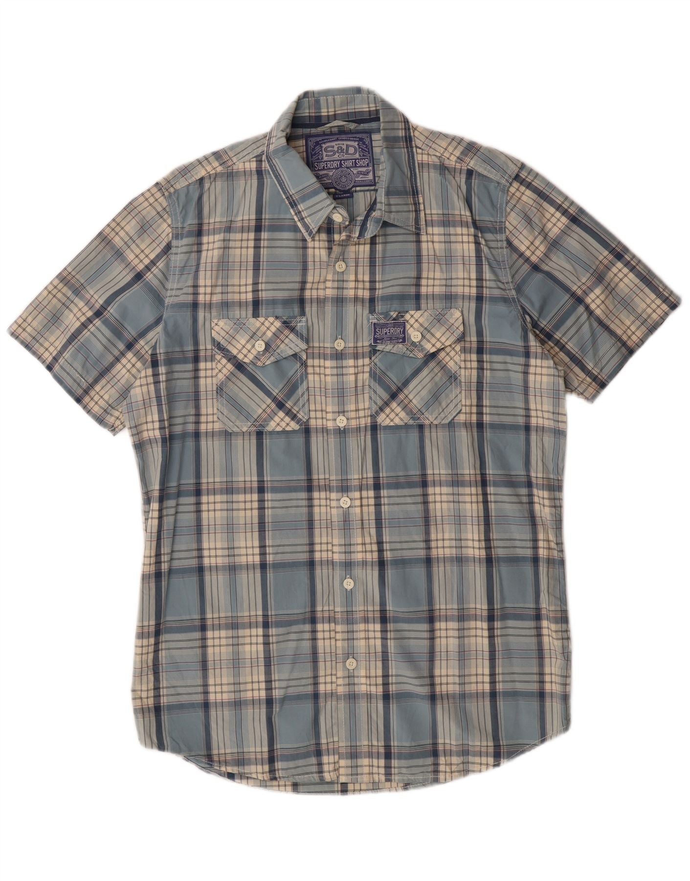 Camicia a maniche corte da uomo SUPERDRY XL in cotone a quadri blu