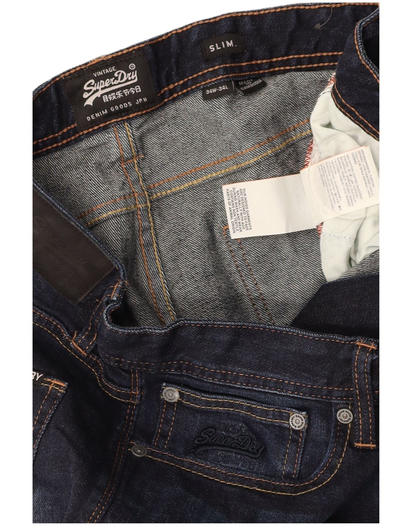 Jeans slim da uomo SUPERDRY W34 L34 cotone blu navy