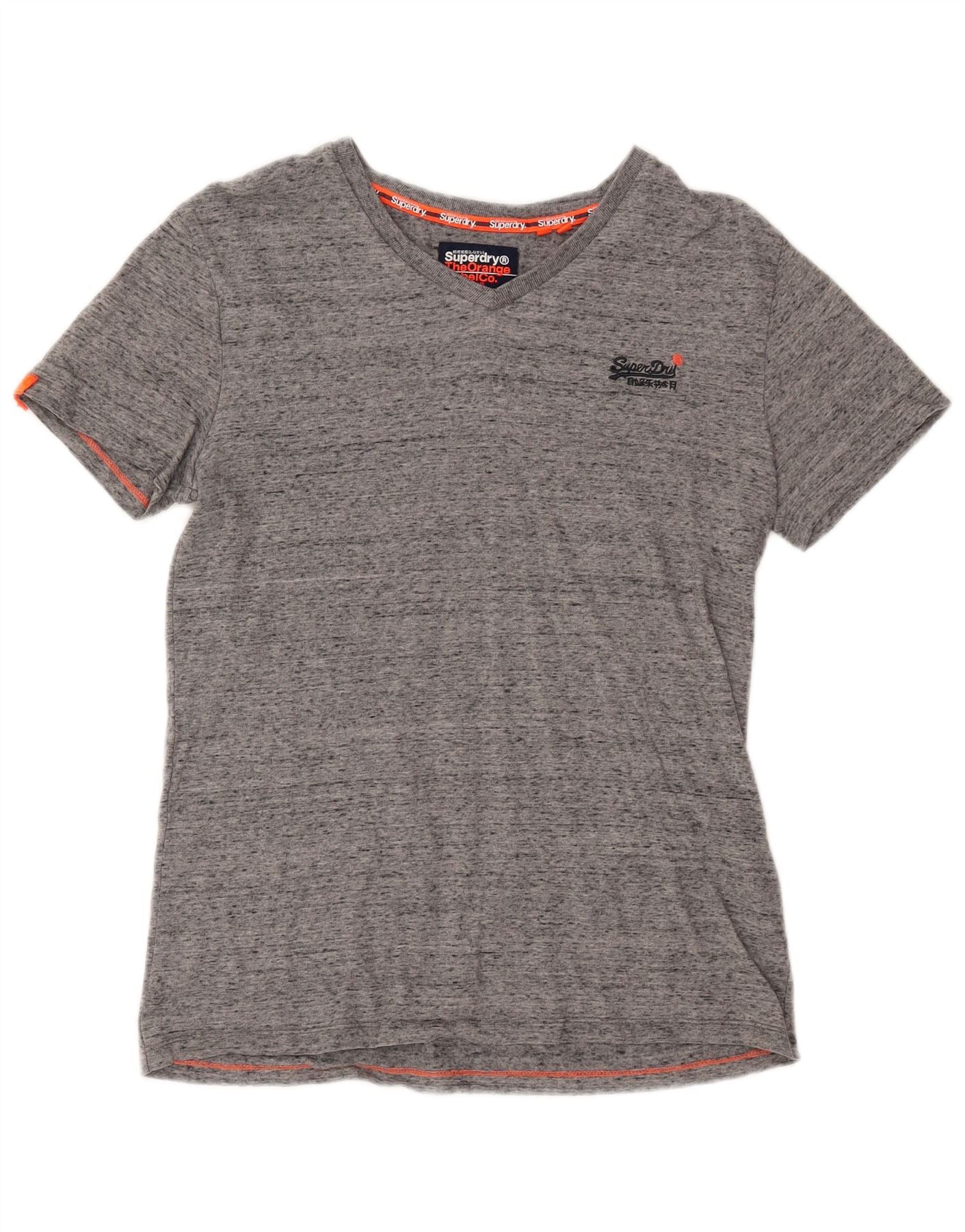 T-shirt da uomo SUPERDRY Top piccolo in cotone chiazzato grigio