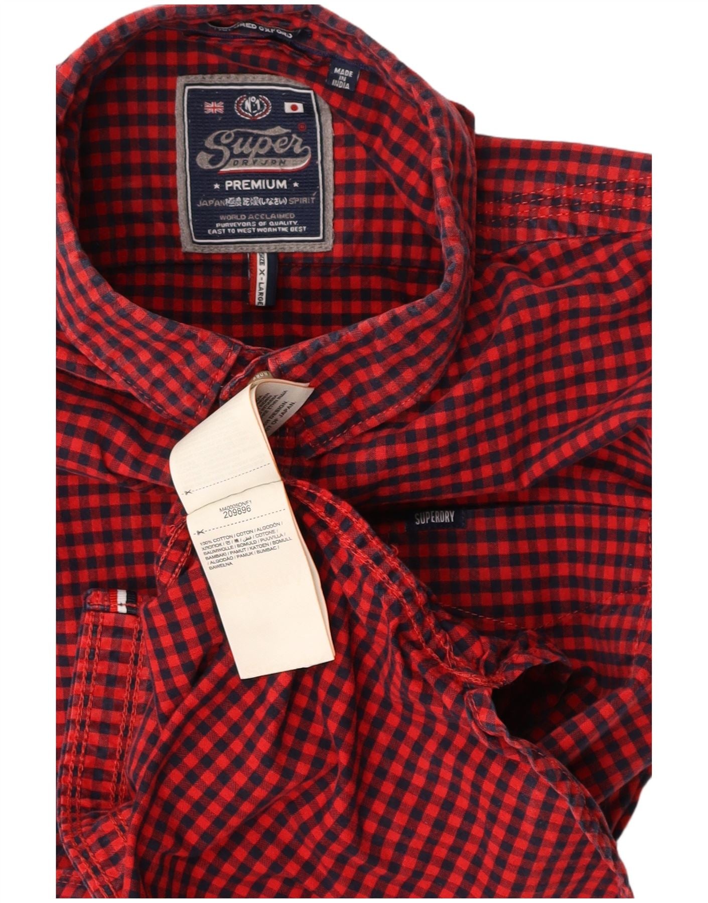 Camicia su misura da uomo in flanella SUPERDRY XL in cotone a quadretti rosso