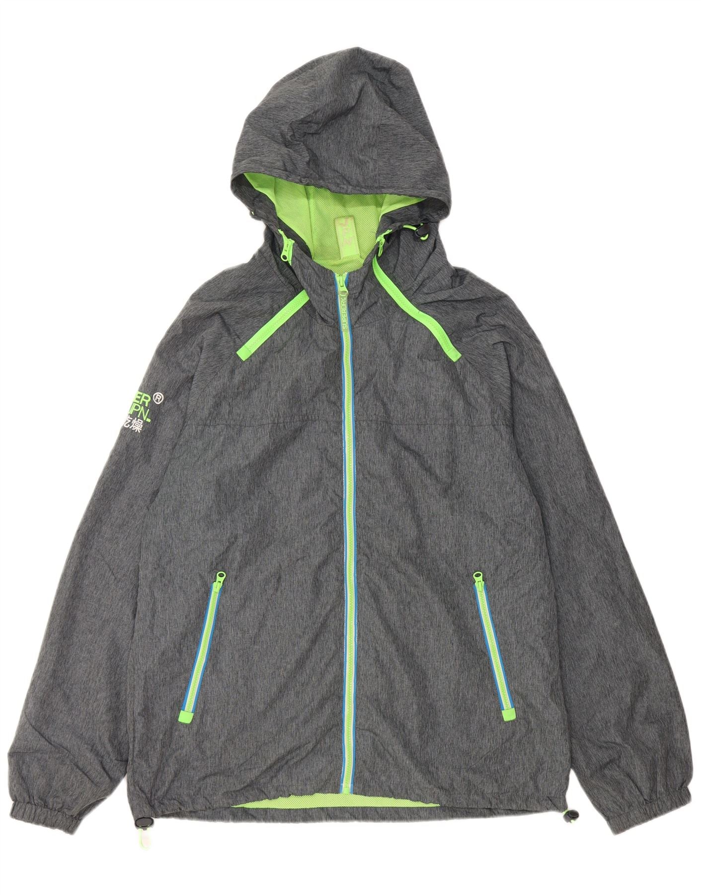 SUPERDRY Giacca antipioggia da uomo The Windcagoule con cappuccio UK 44 2XL Poliestere grigio