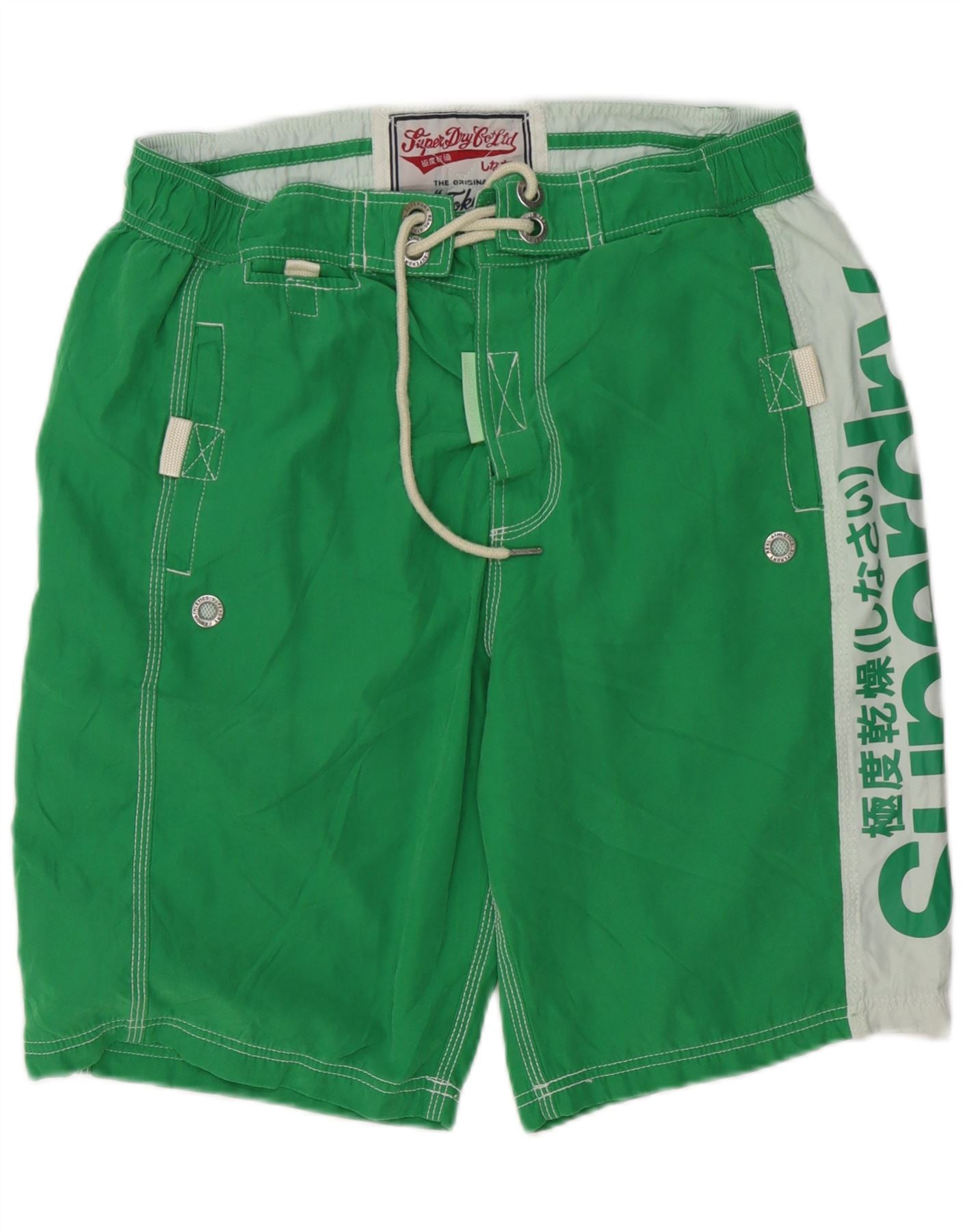 Pantaloncini da bagno da uomo con grafica Tokyo SUPERDRY XL verde a blocchi di colore