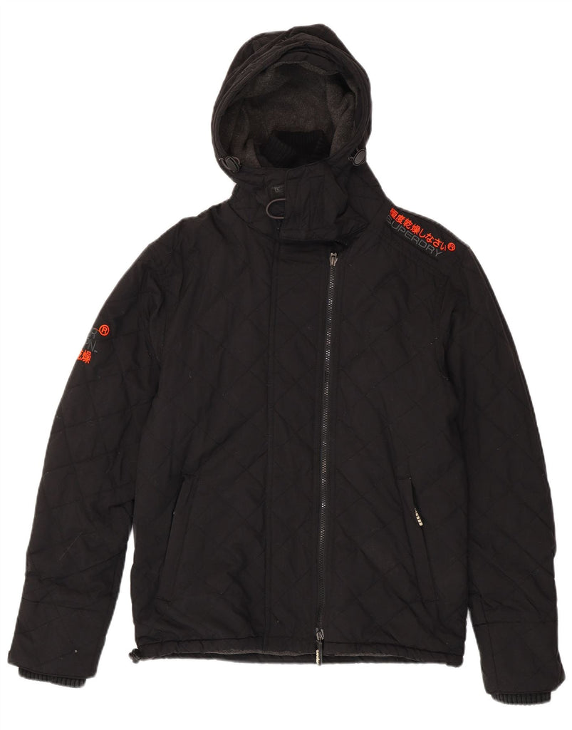 SUPERDRY Mens Windcheater Hooded Windbreaker Jacket UK 36 Small Black
