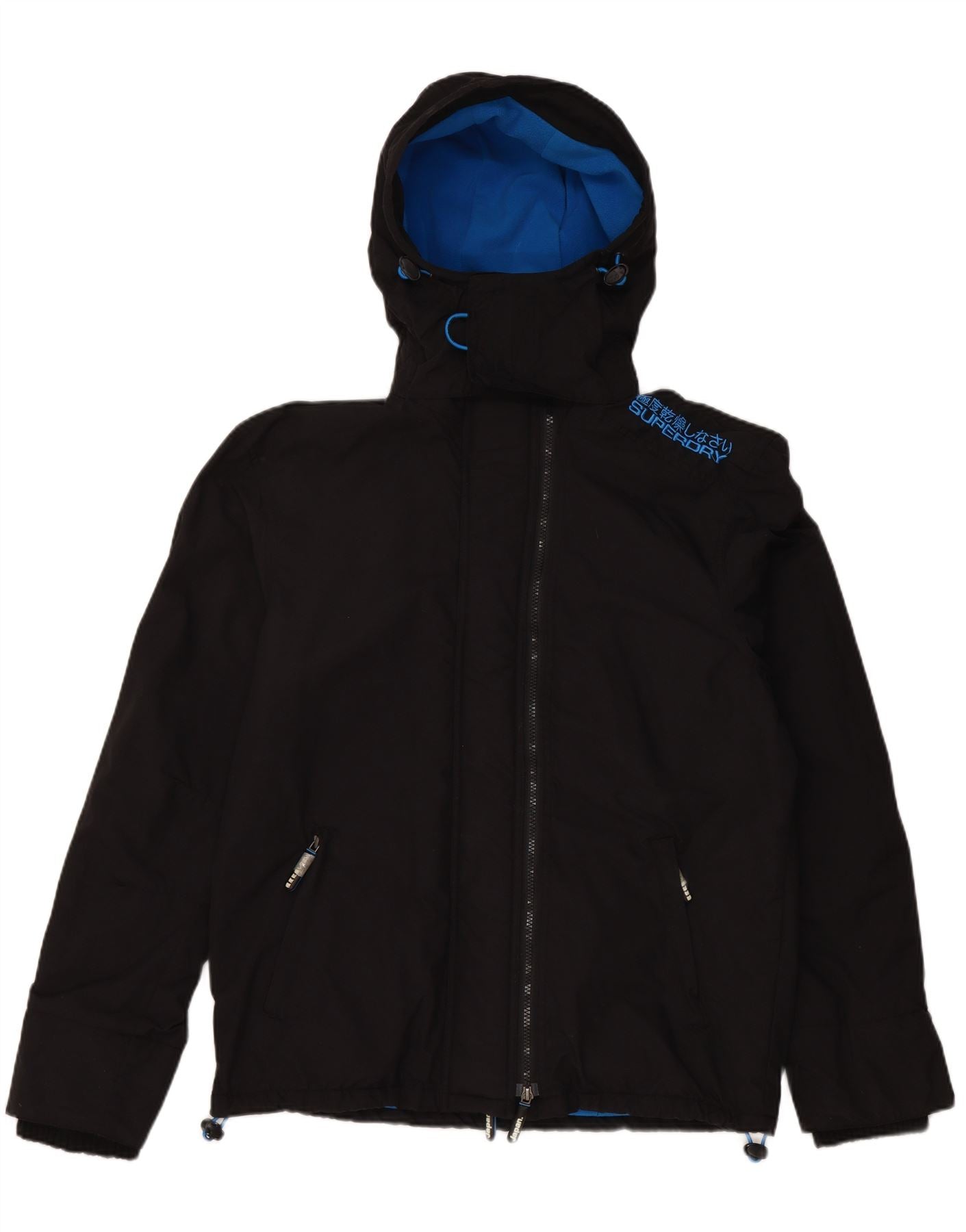 SUPERDRY Mens Windcheater Hooded Windbreaker Jacket UK 42 XL Black Nylon