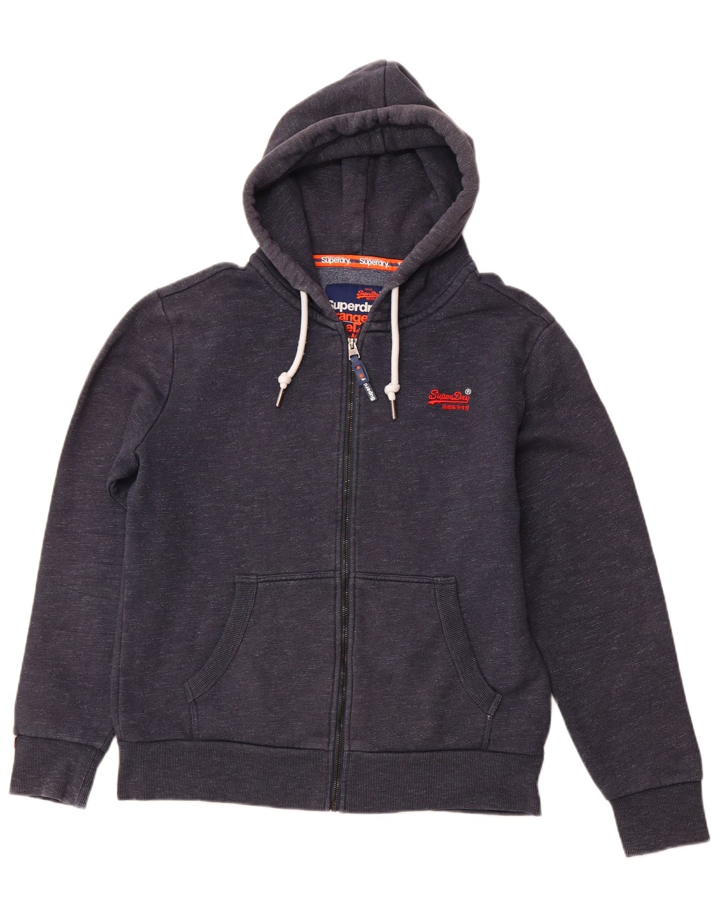 Maglione con cappuccio e zip da uomo SUPERDRY 2XL cotone screziato blu navy