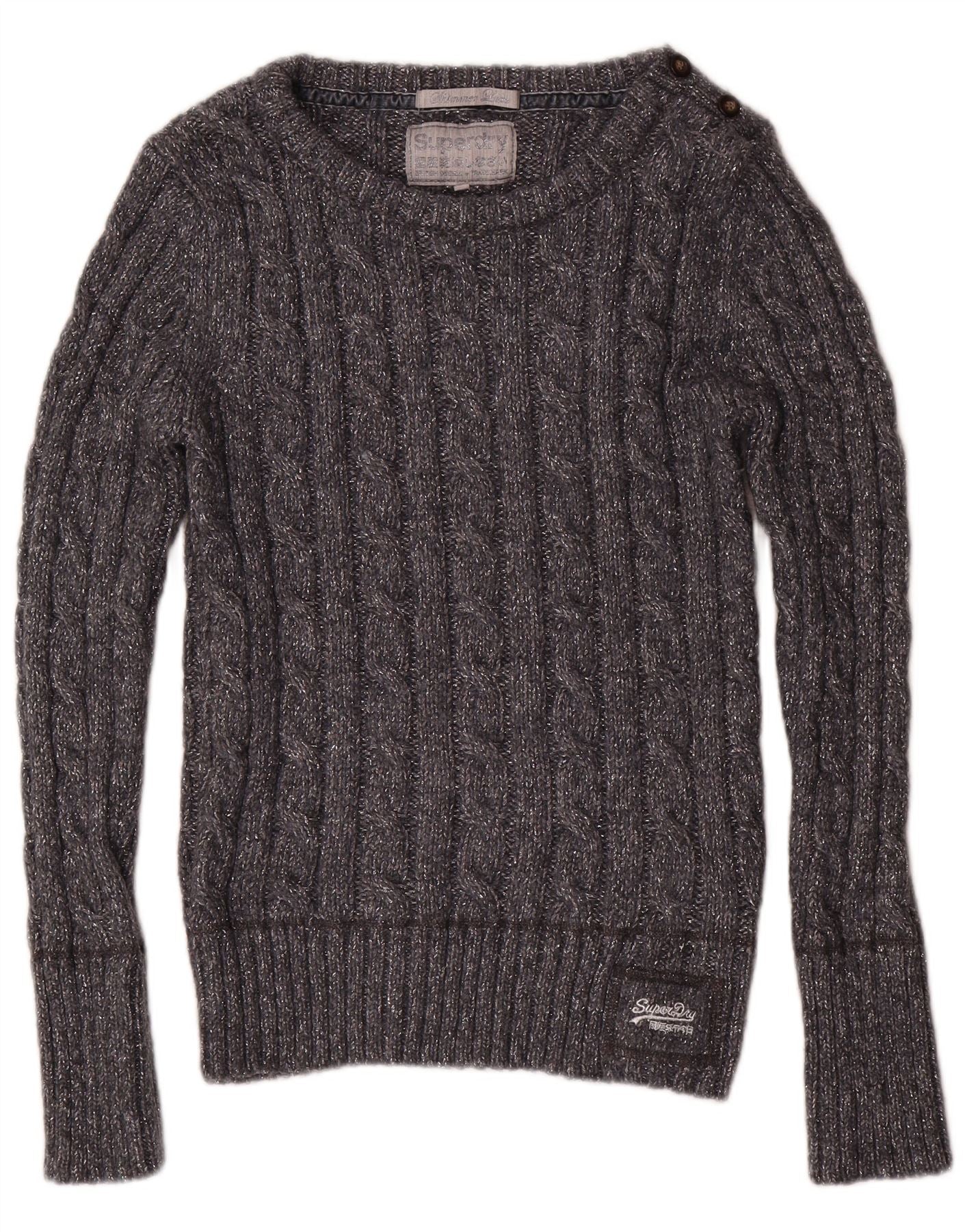 Maglione maglione da donna con scollo a barca SUPERDRY UK 16 grande poliestere grigio