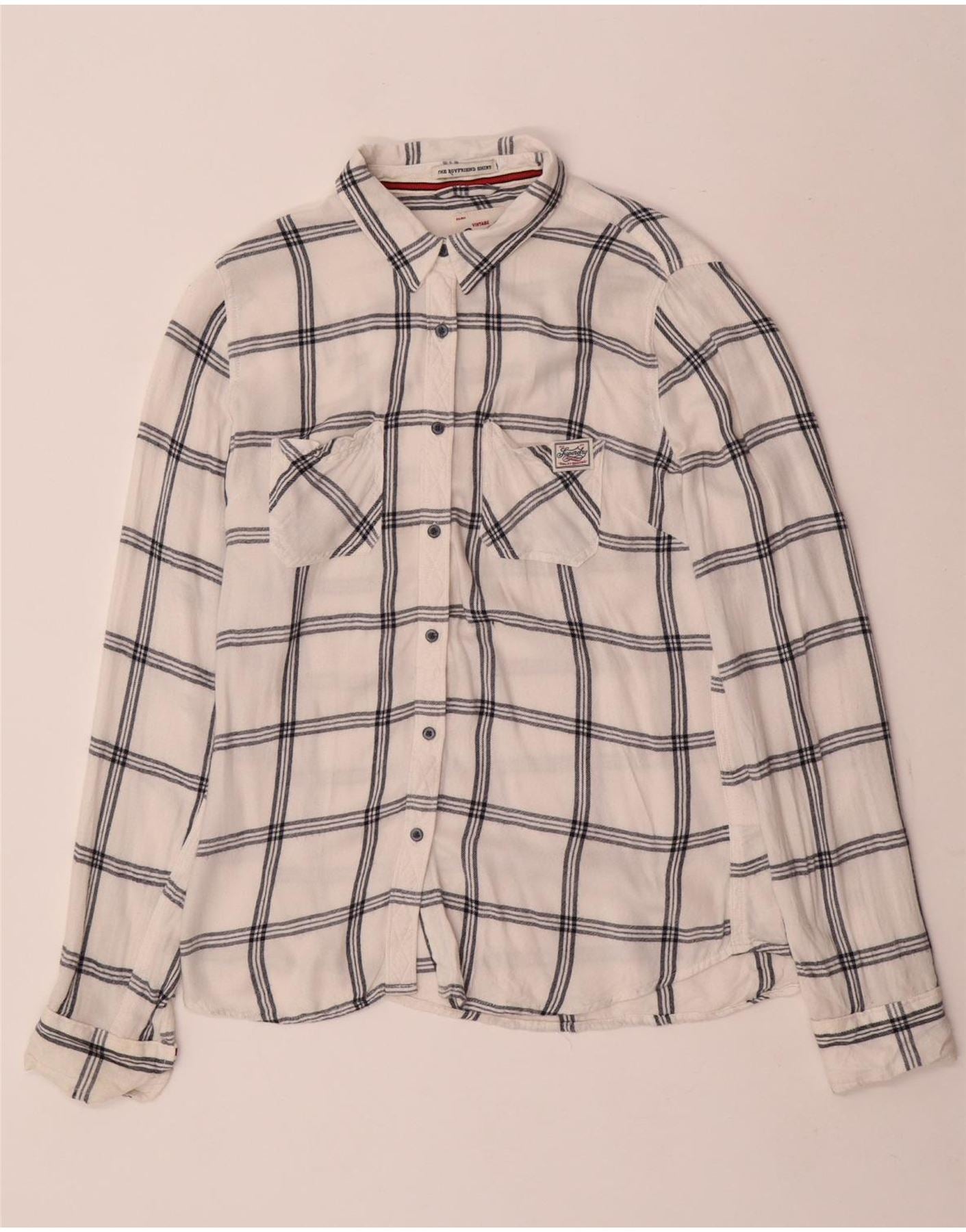 Camicia da donna in flanella Boyfriend Superdry UK 14 viscosa a quadri bianca media