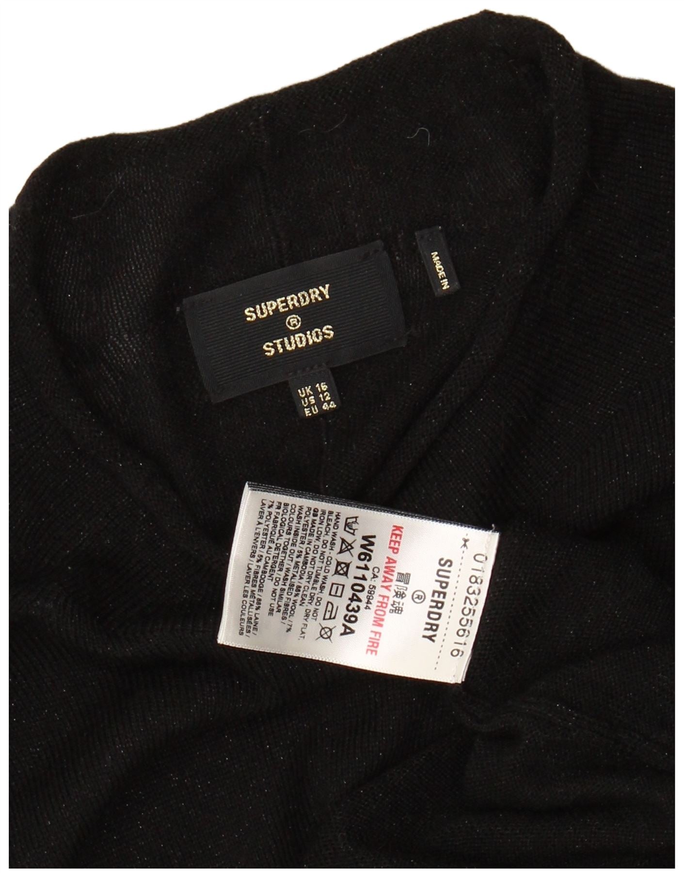Maglione maglione girocollo corto da donna SUPERDRY UK 16 grande lana nera