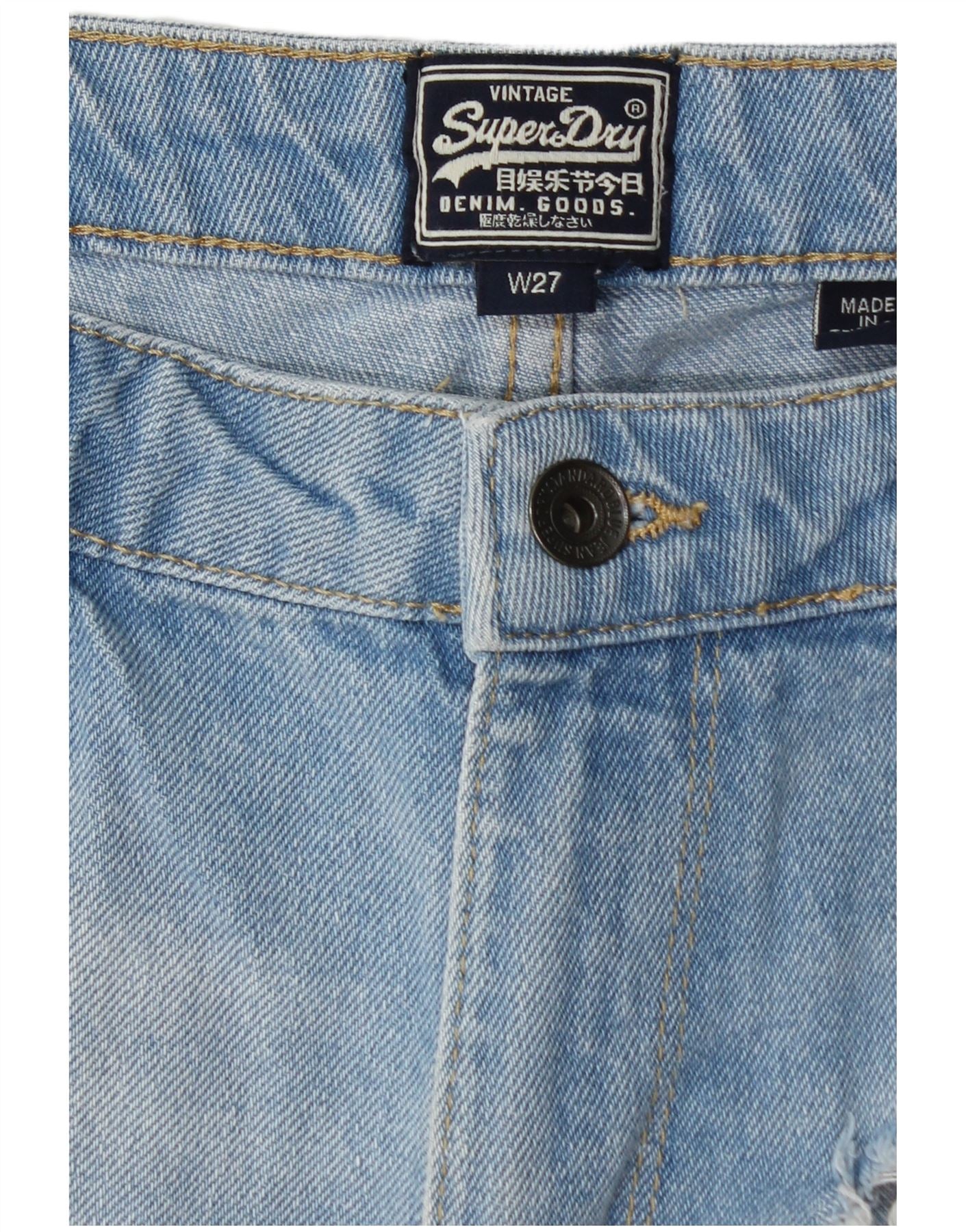 Pantaloncini di jeans con grafica invecchiata da donna SUPERDRY W27 piccolo cotone blu