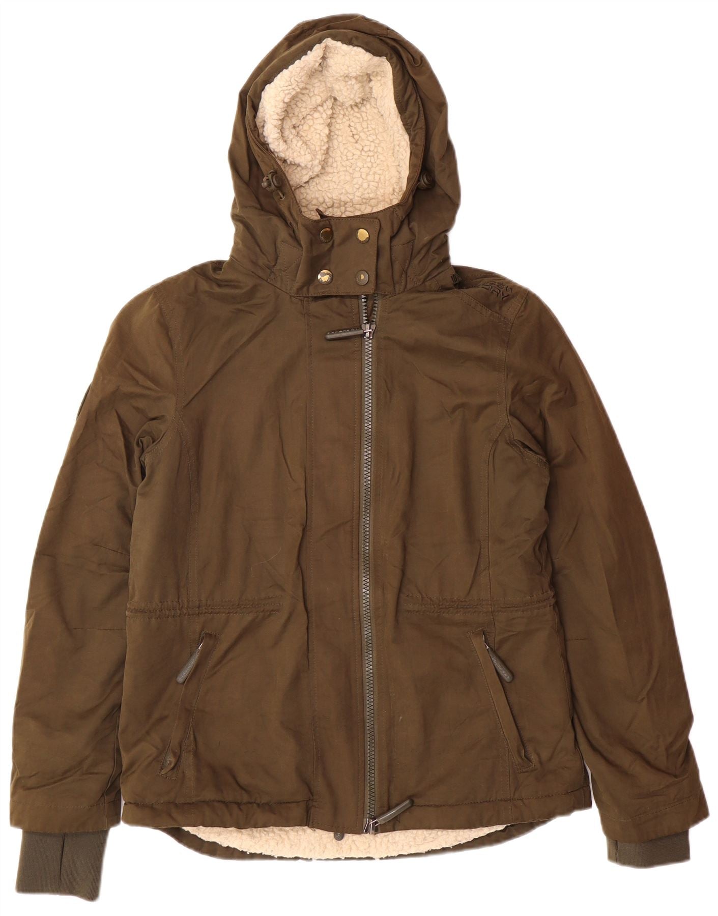 Giacca a vento con cappuccio grafica da donna SUPERDRY UK 12 medio cachi