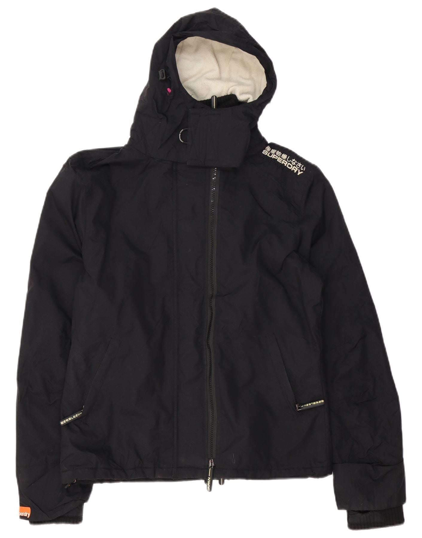 Giacca a vento con cappuccio grafica da donna Superdry UK 16 grande nylon nero