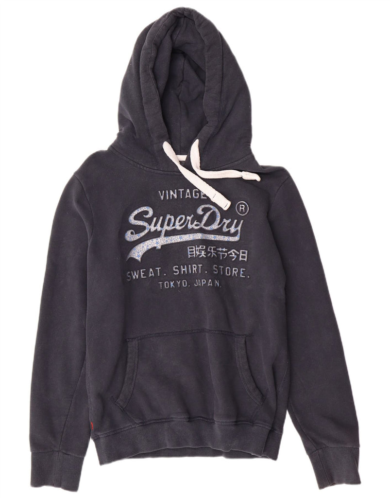Maglione con cappuccio grafico da donna SUPERDRY UK 14 grande cotone blu navy