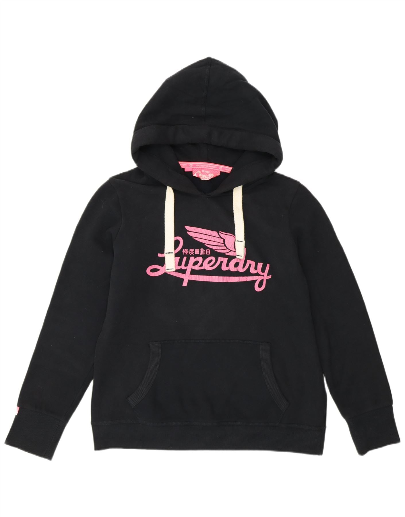Felpa con cappuccio grafica da donna SUPERDRY UK 18 XL cotone nero