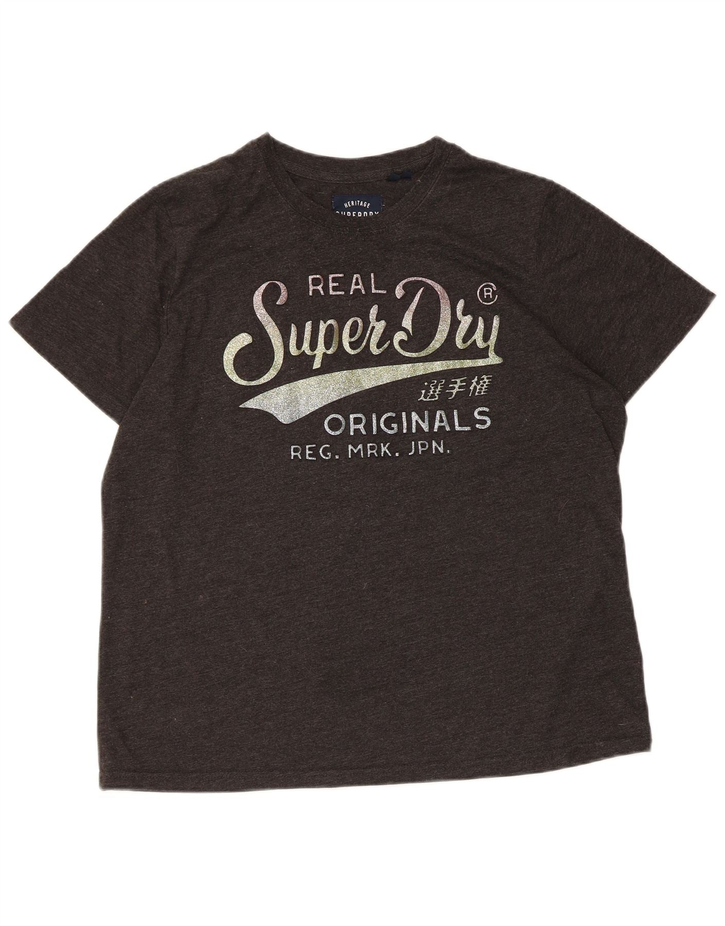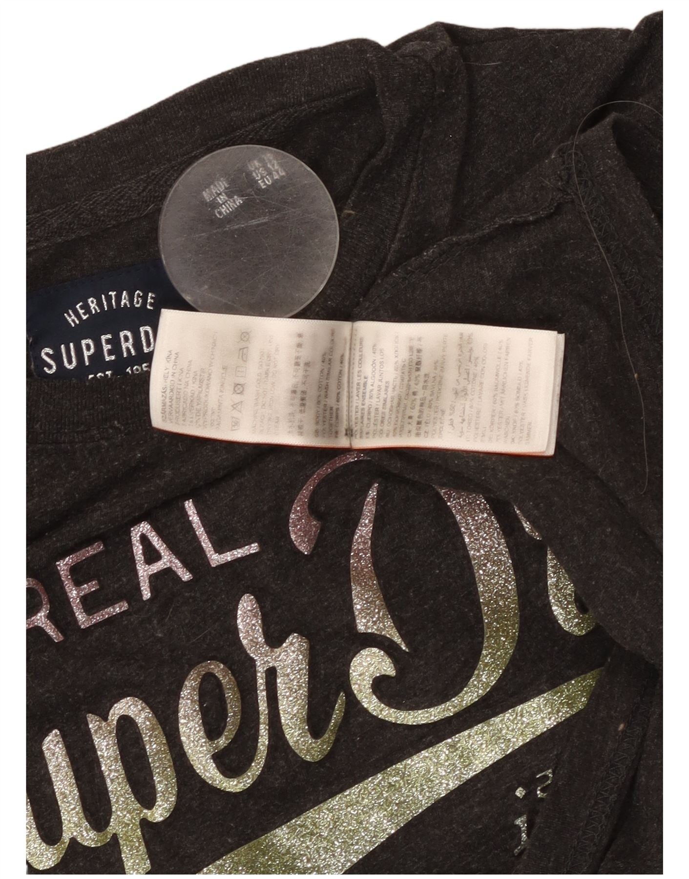 T-shirt grafica da donna SUPERDRY Top UK 16 grande cotone chiazzato grigio