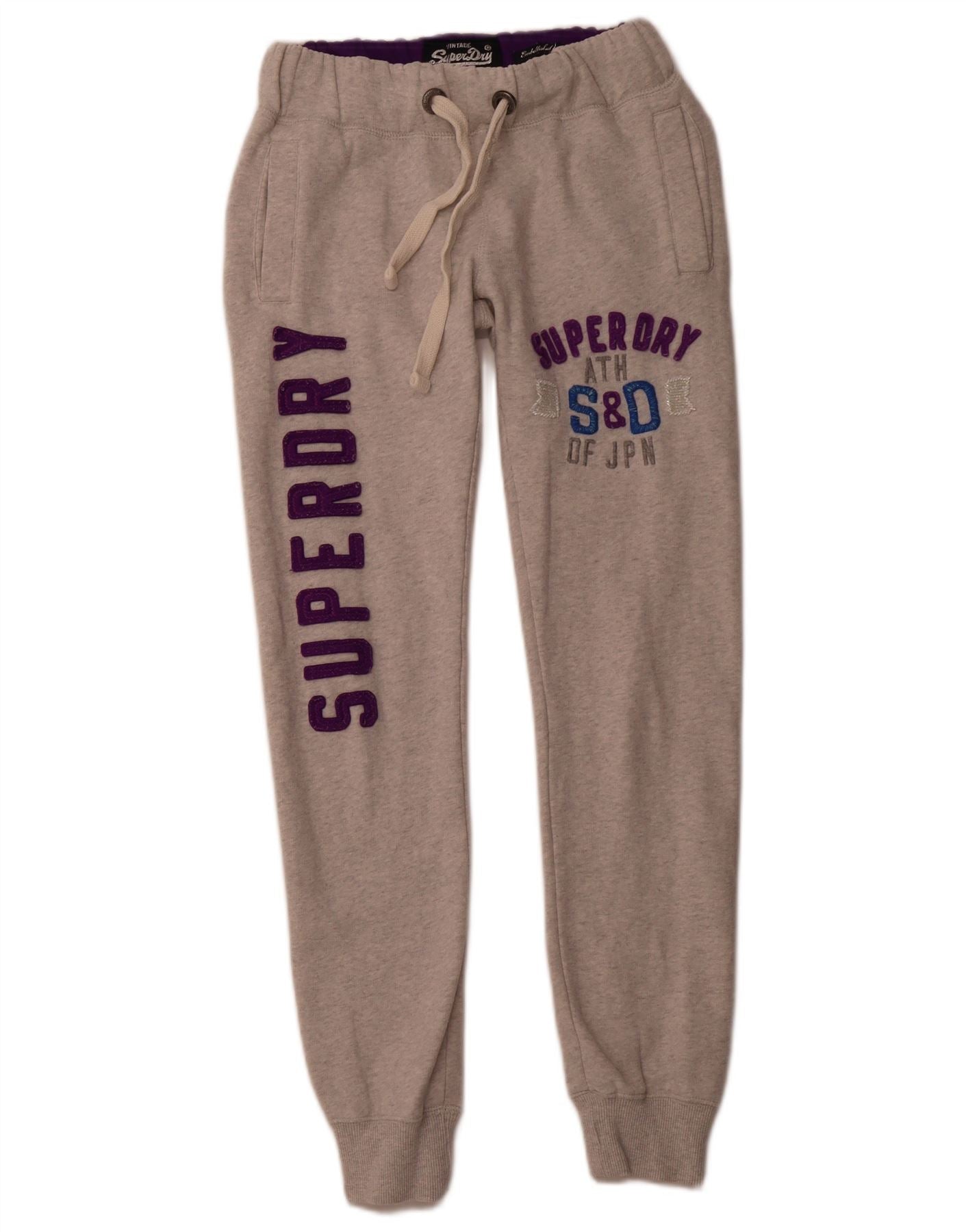 Pantaloni da tuta con grafica da donna SUPERDRY Joggers UK 4 XS Cotone grigio