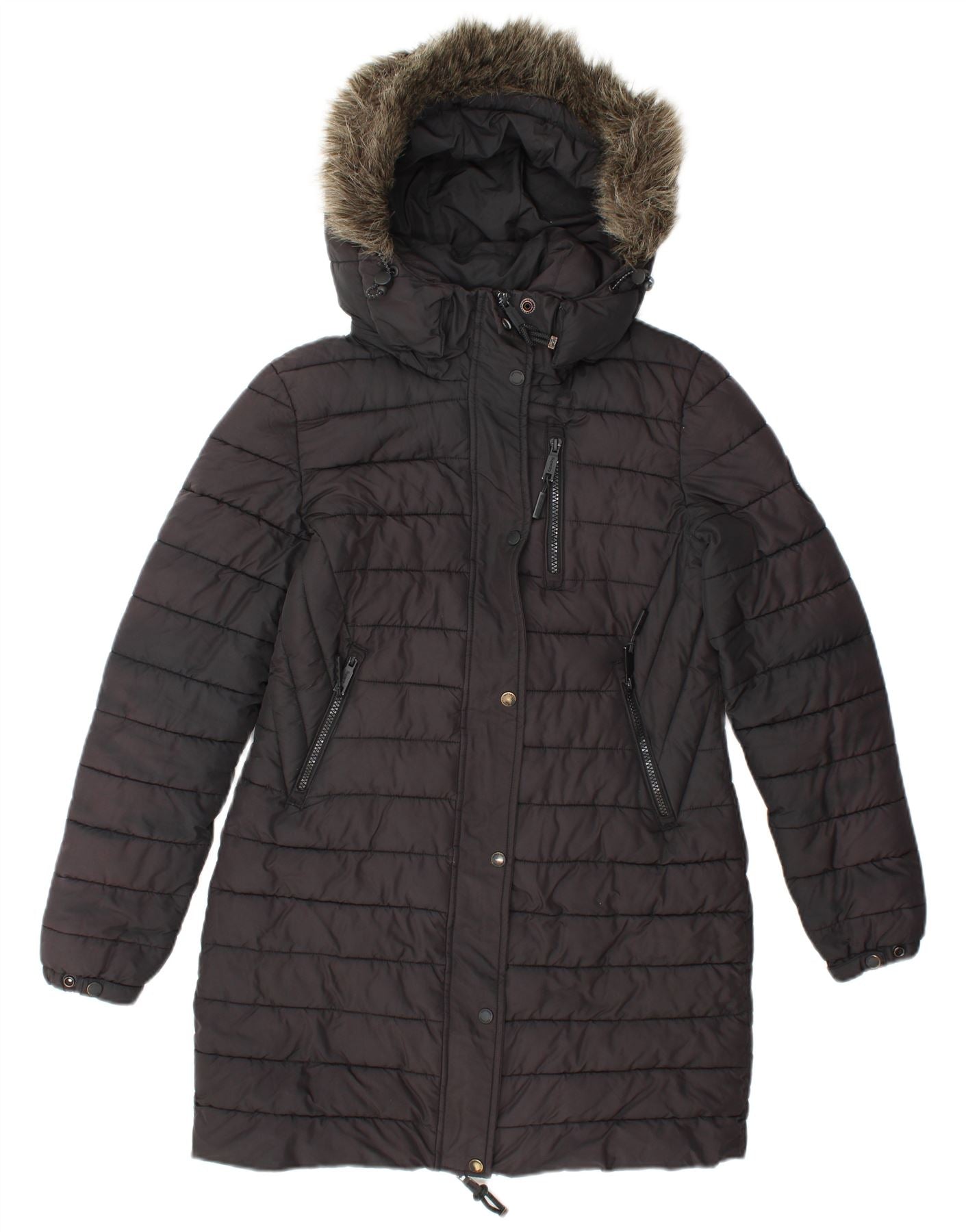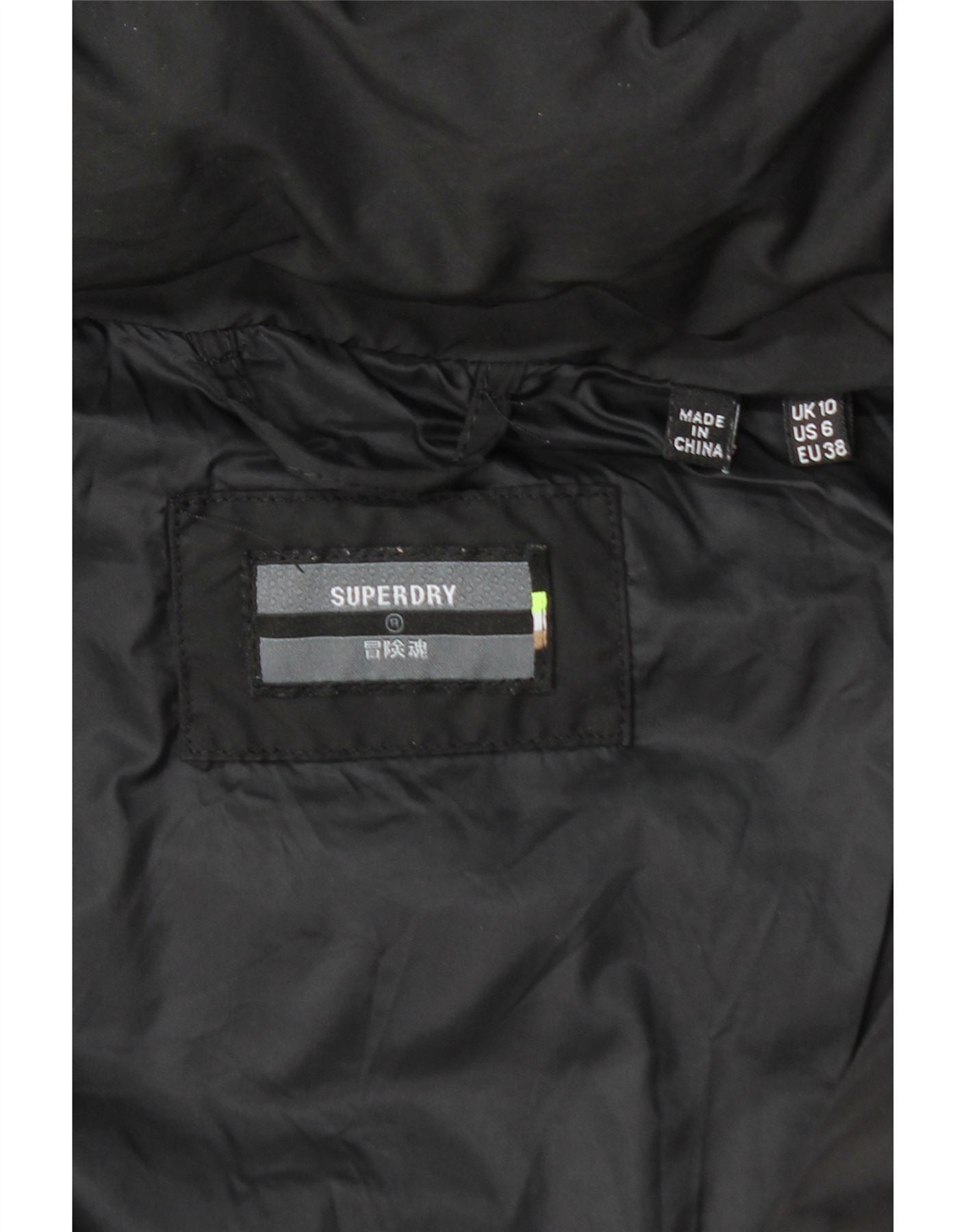 Cappotto imbottito con cappuccio da donna SUPERDRY UK 10 piccolo poliestere nero