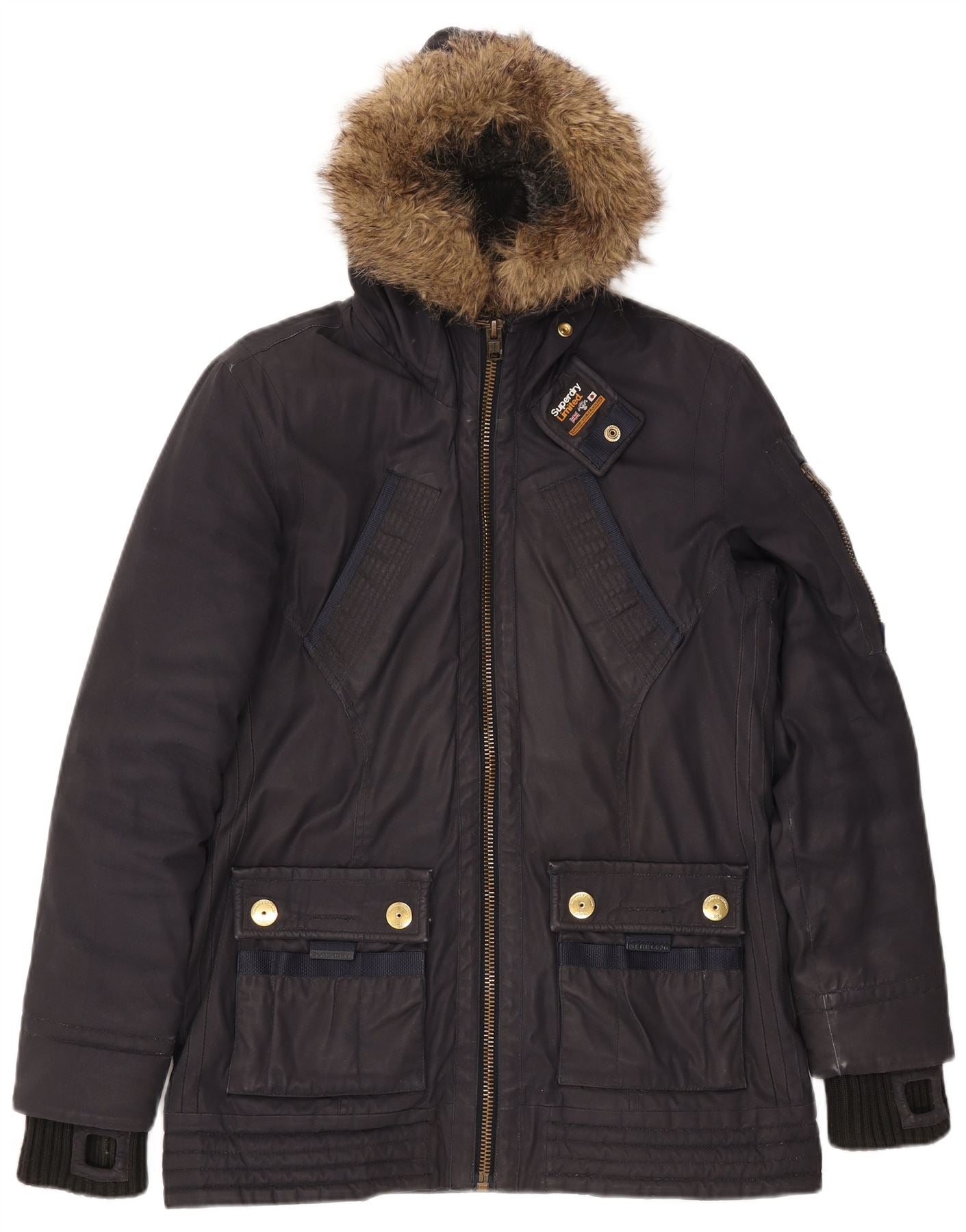 Giacca parka da donna con cappuccio SUPERDRY UK 16 grande cotone blu navy