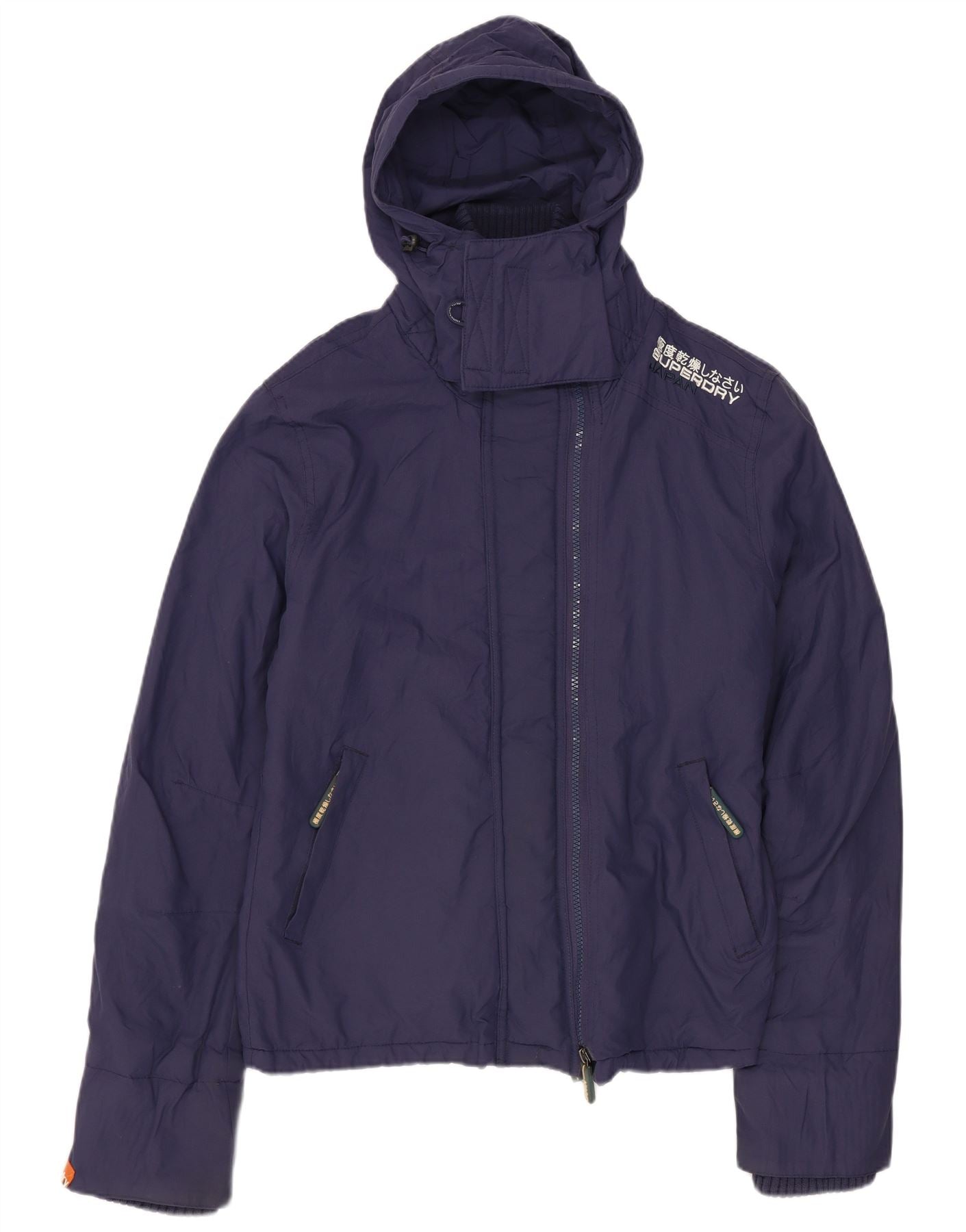 Giacca a vento con cappuccio da donna SUPERDRY UK 14 nylon blu navy medio