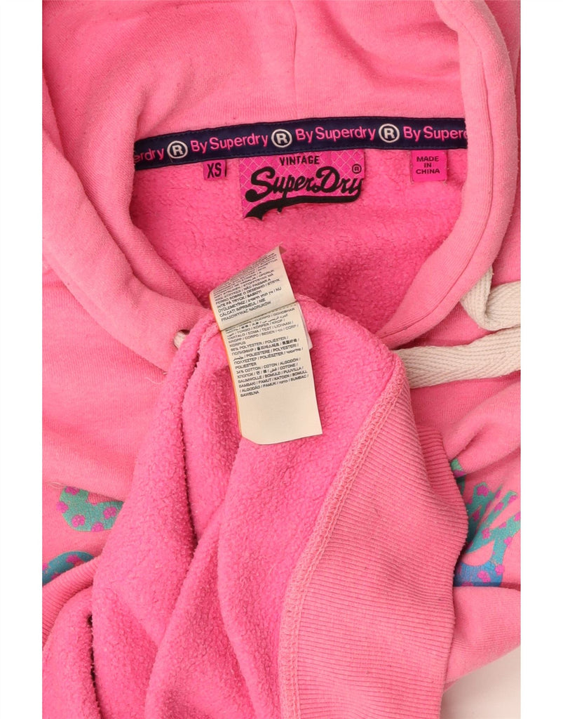 SUPERDRY Womens Oversized Graphic Hoodie Jumper UK 6 XS Pink Polyester
