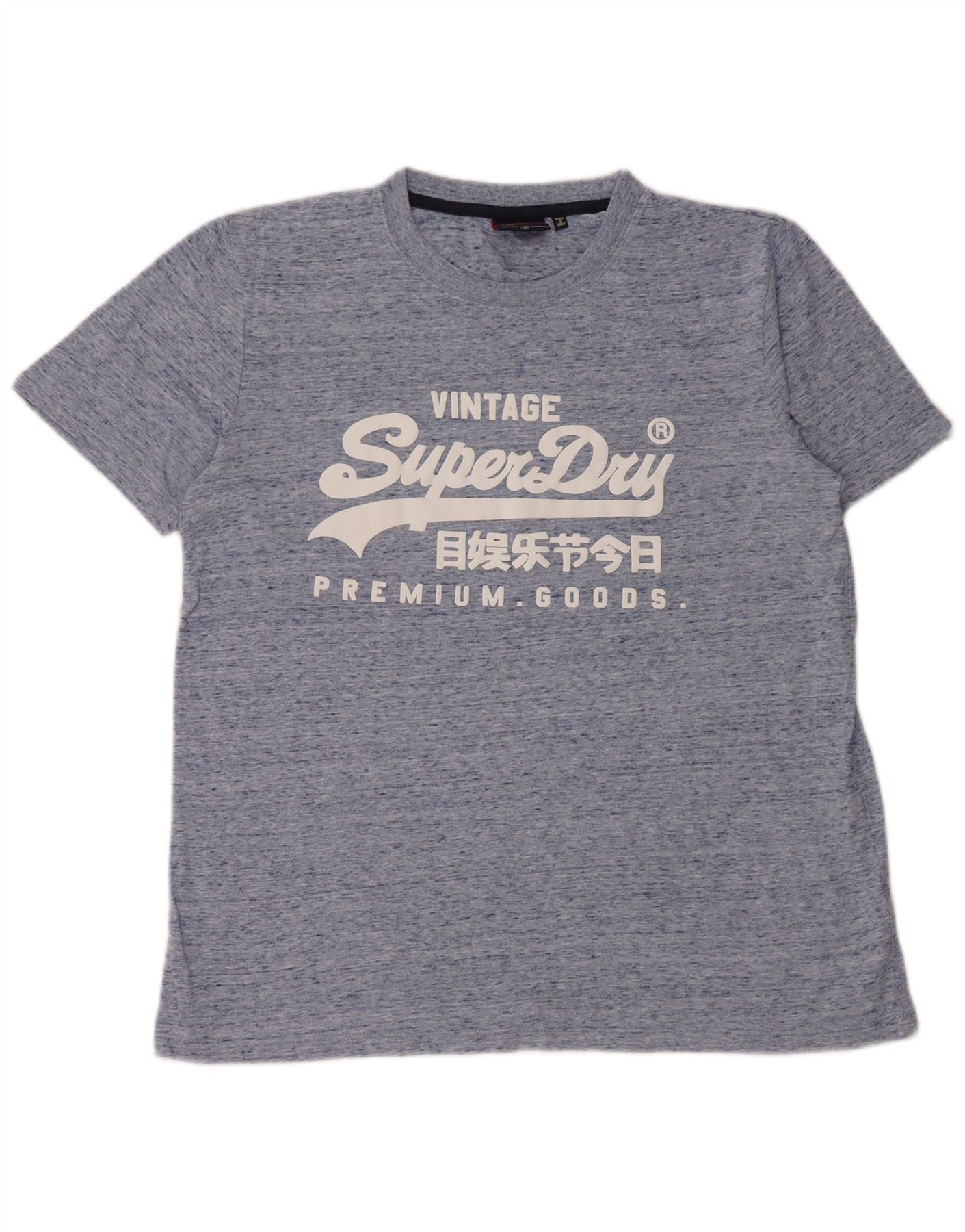 SUPERDRY Womens Oversized Graphic T-Shirt Top UK 10 Small Blue Flecked