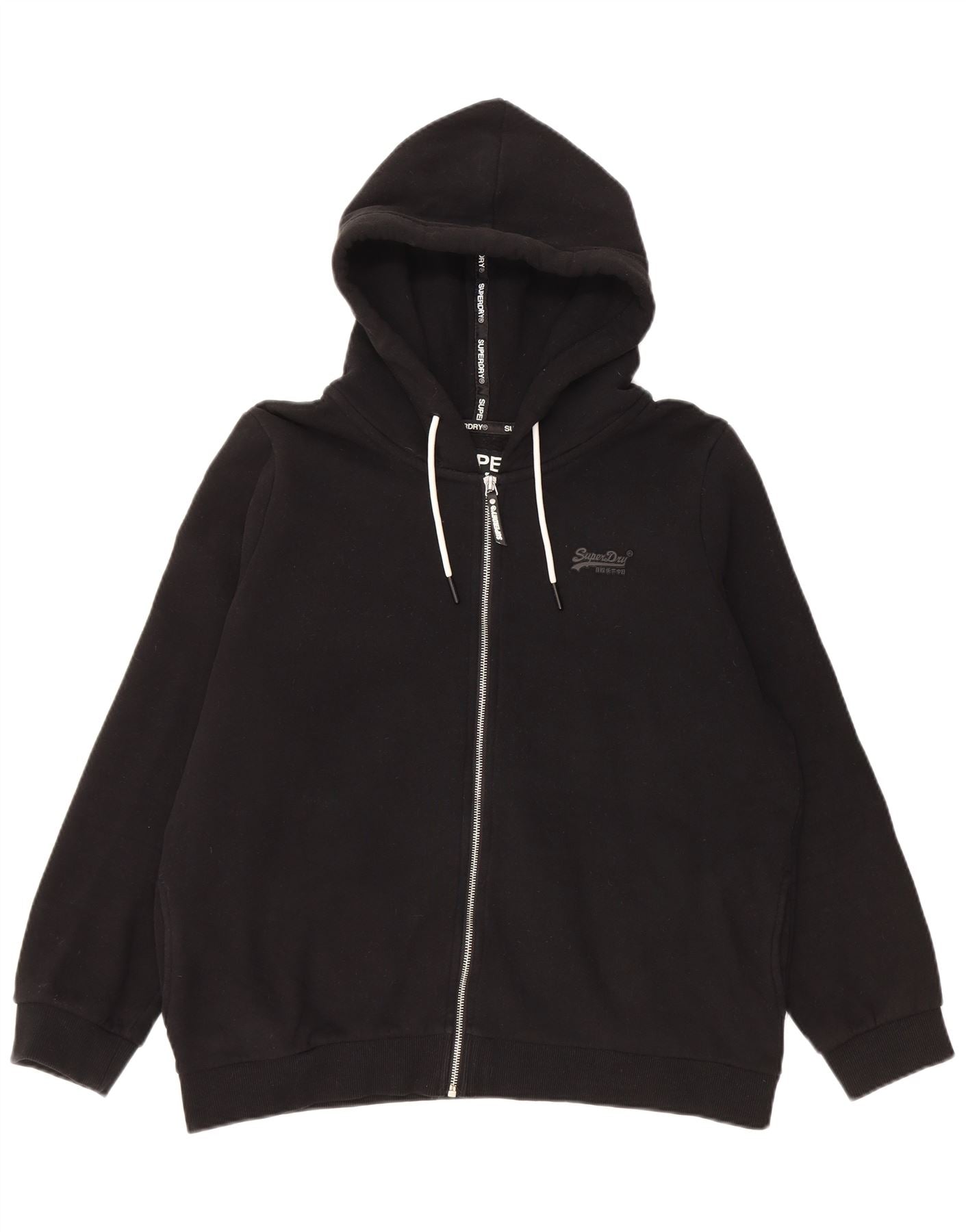 SUPERDRY Womens Oversized Zip Hoodie Sweater UK 16 Large Black Cotton