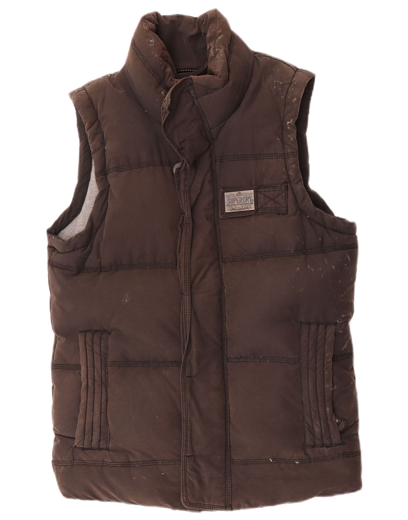 Gilet imbottito da donna Superdry UK 36 piccolo cotone marrone