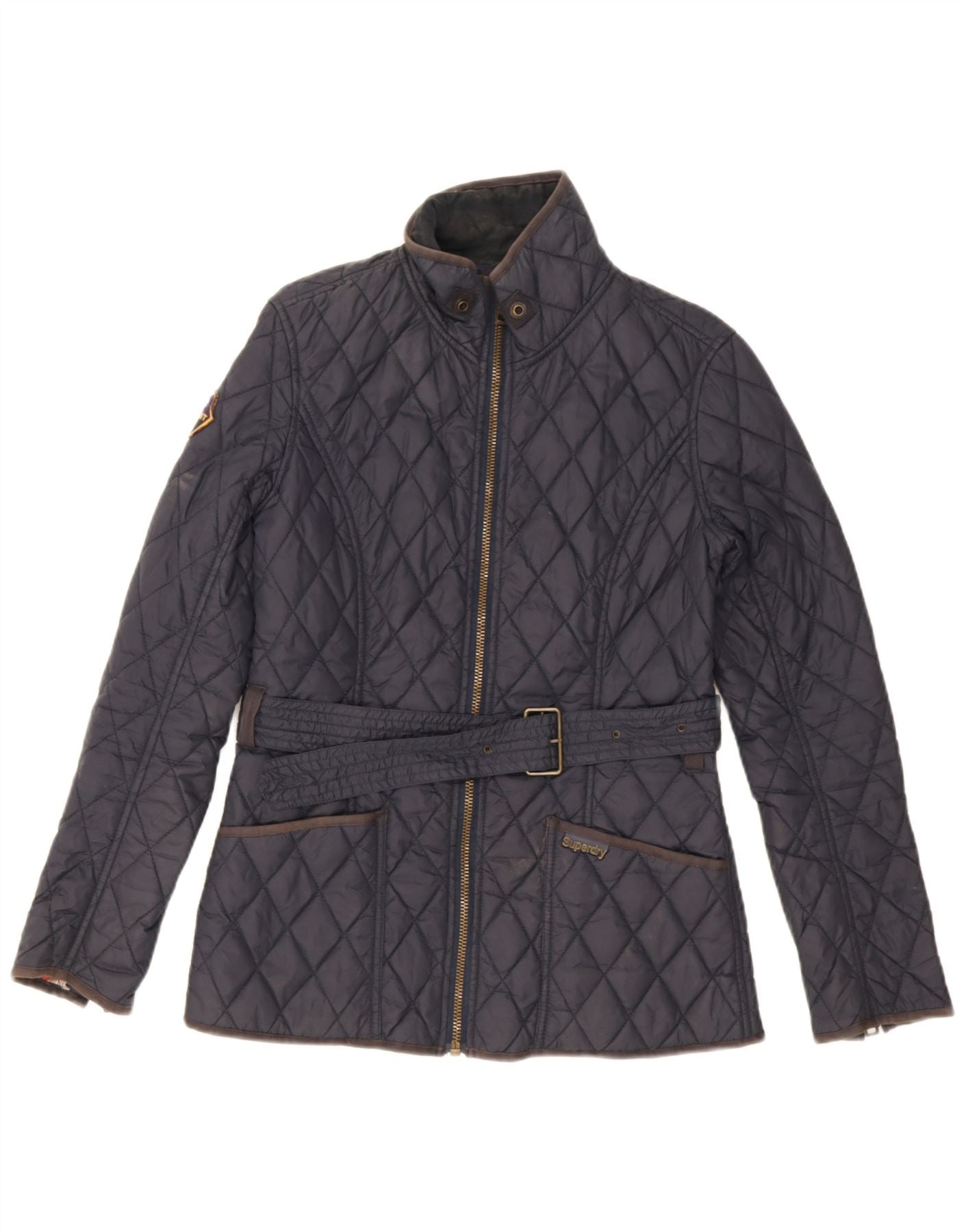 Giacca trapuntata da donna Superdry UK 12 nylon blu navy medio
