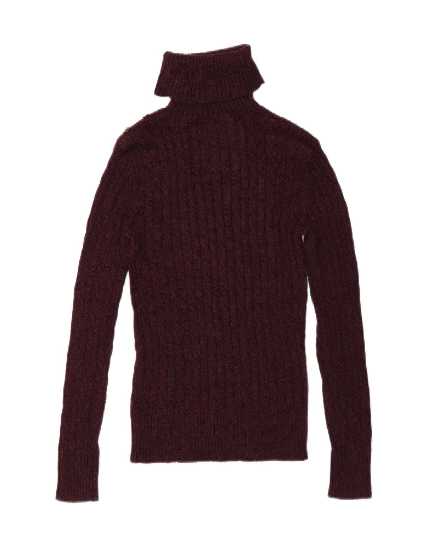 Maglione maglione da donna con collo alto SUPERDRY UK 10 piccolo cotone bordeaux