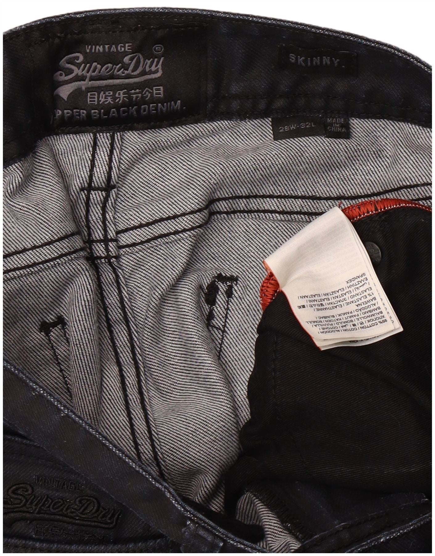 Jeans skinny da donna Superdry W28 L32 cotone nero classico