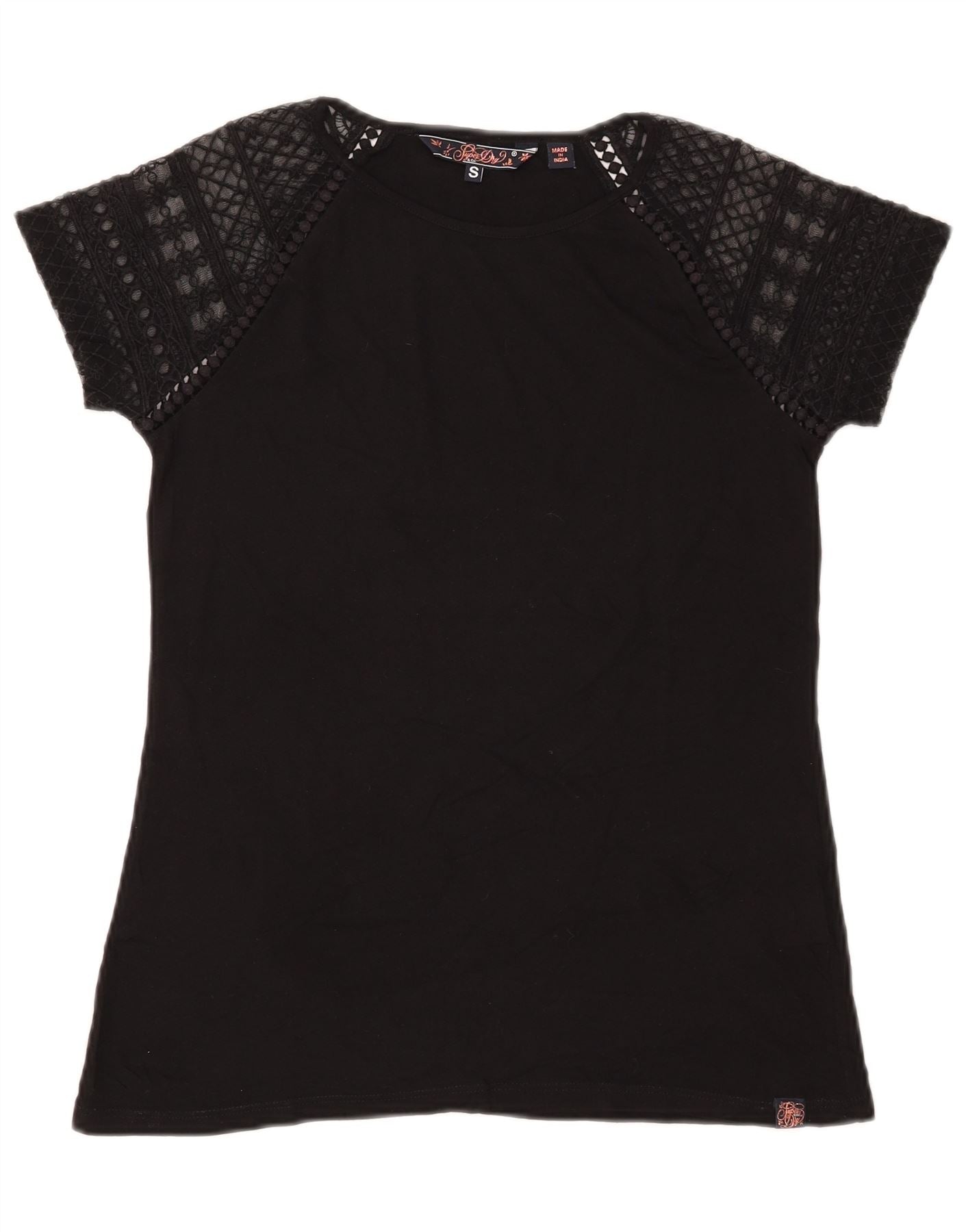 T-shirt da donna SUPERDRY UK 10 piccola in cotone nero