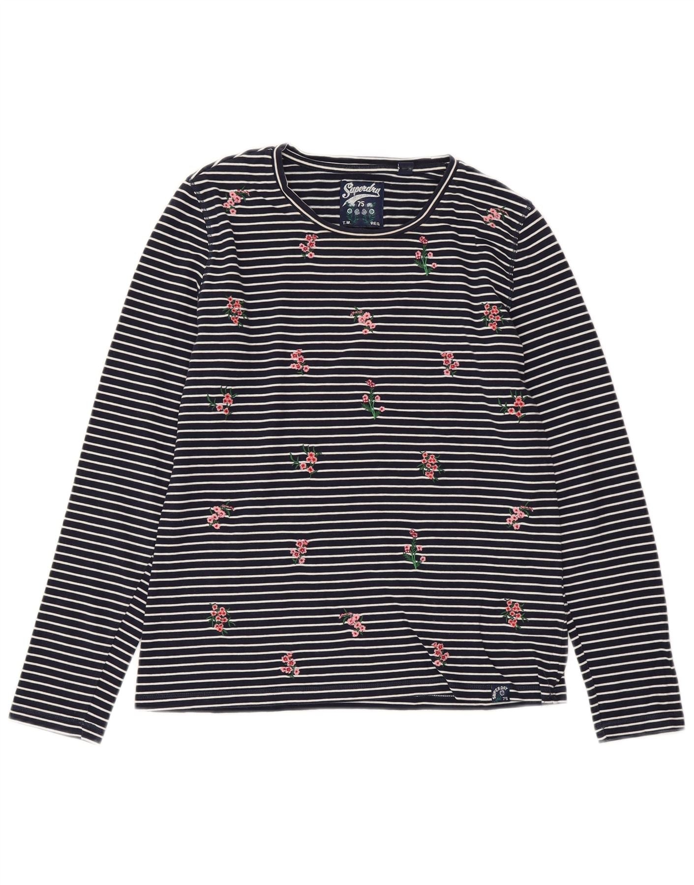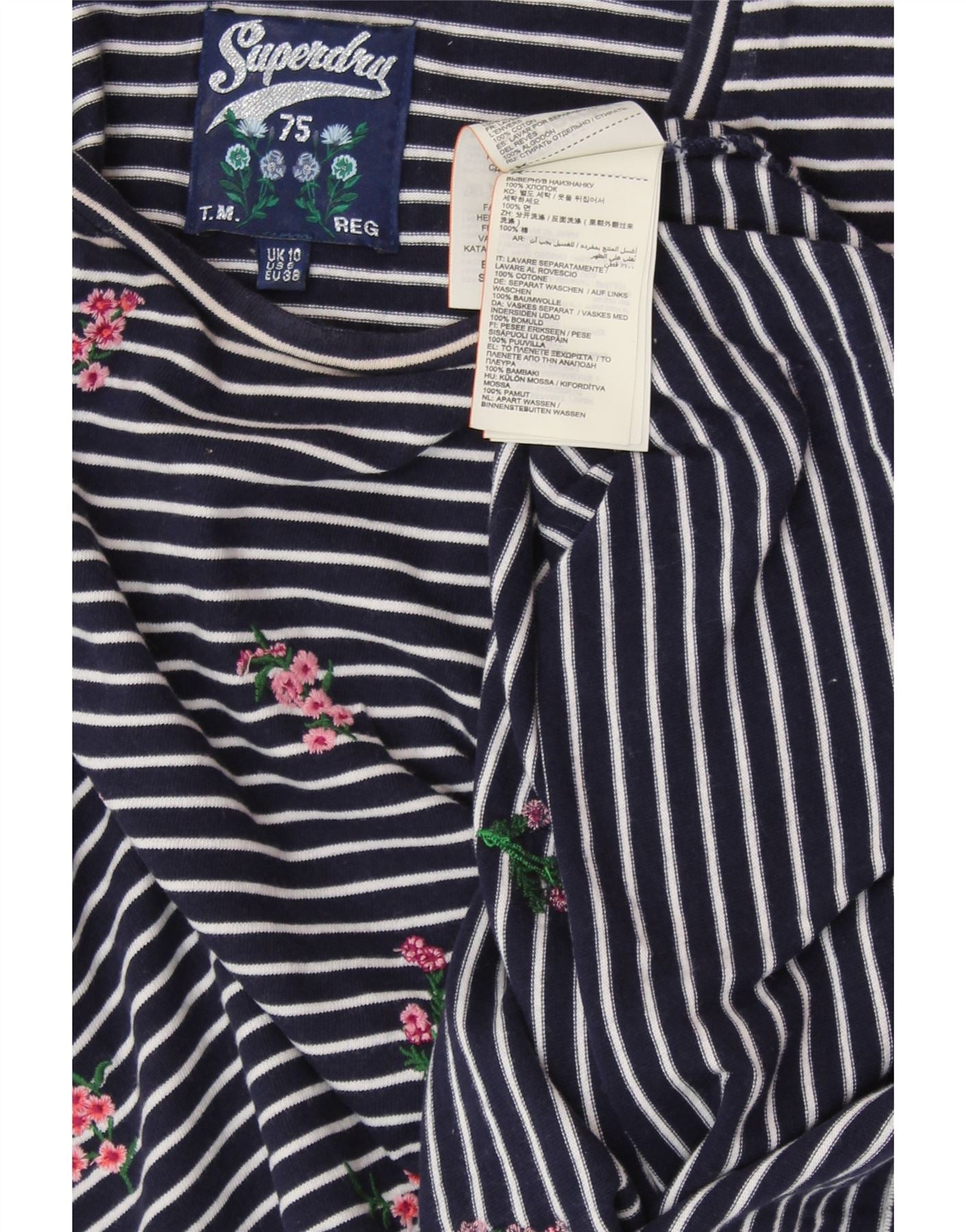 Top da donna a manica lunga SUPERDRY UK 10 piccolo cotone a righe blu navy