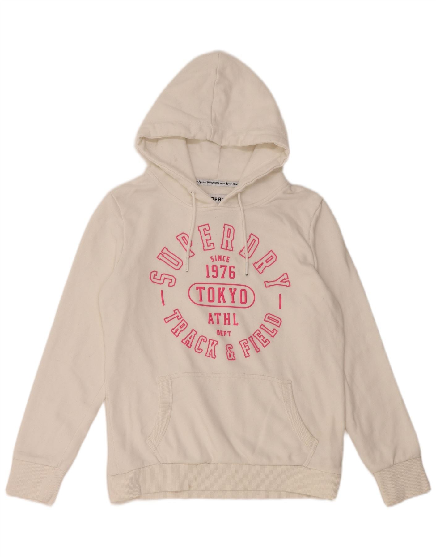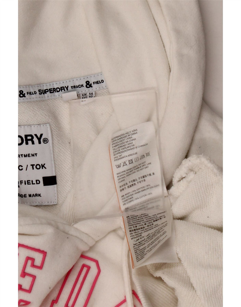 Felpa con cappuccio grafica da atletica leggera da donna SUPERDRY UK 14 grande bianco sporco