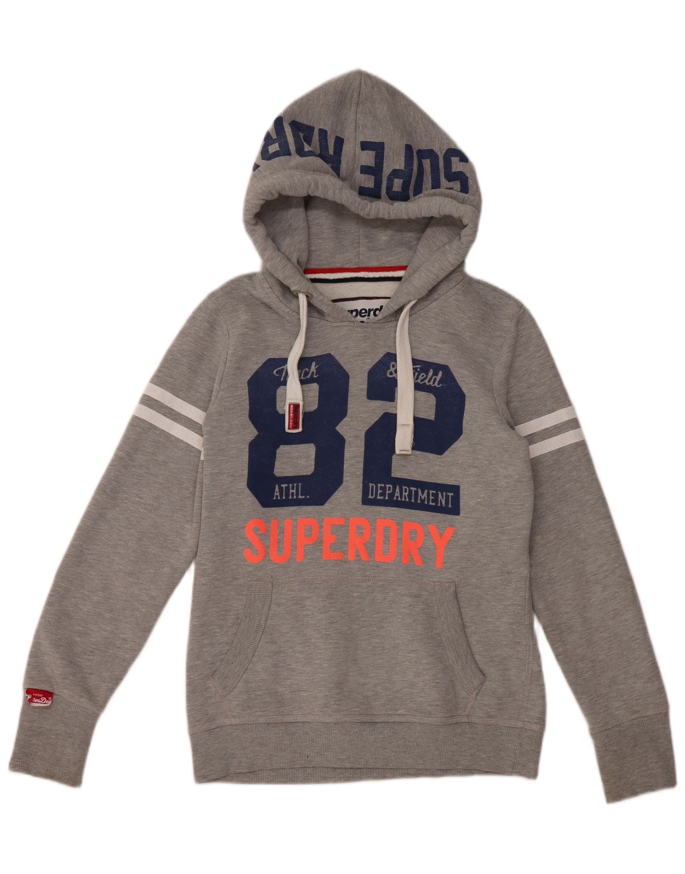 Felpa con cappuccio grafica da atletica leggera SUPERDRY da donna UK 14 Grigio medio