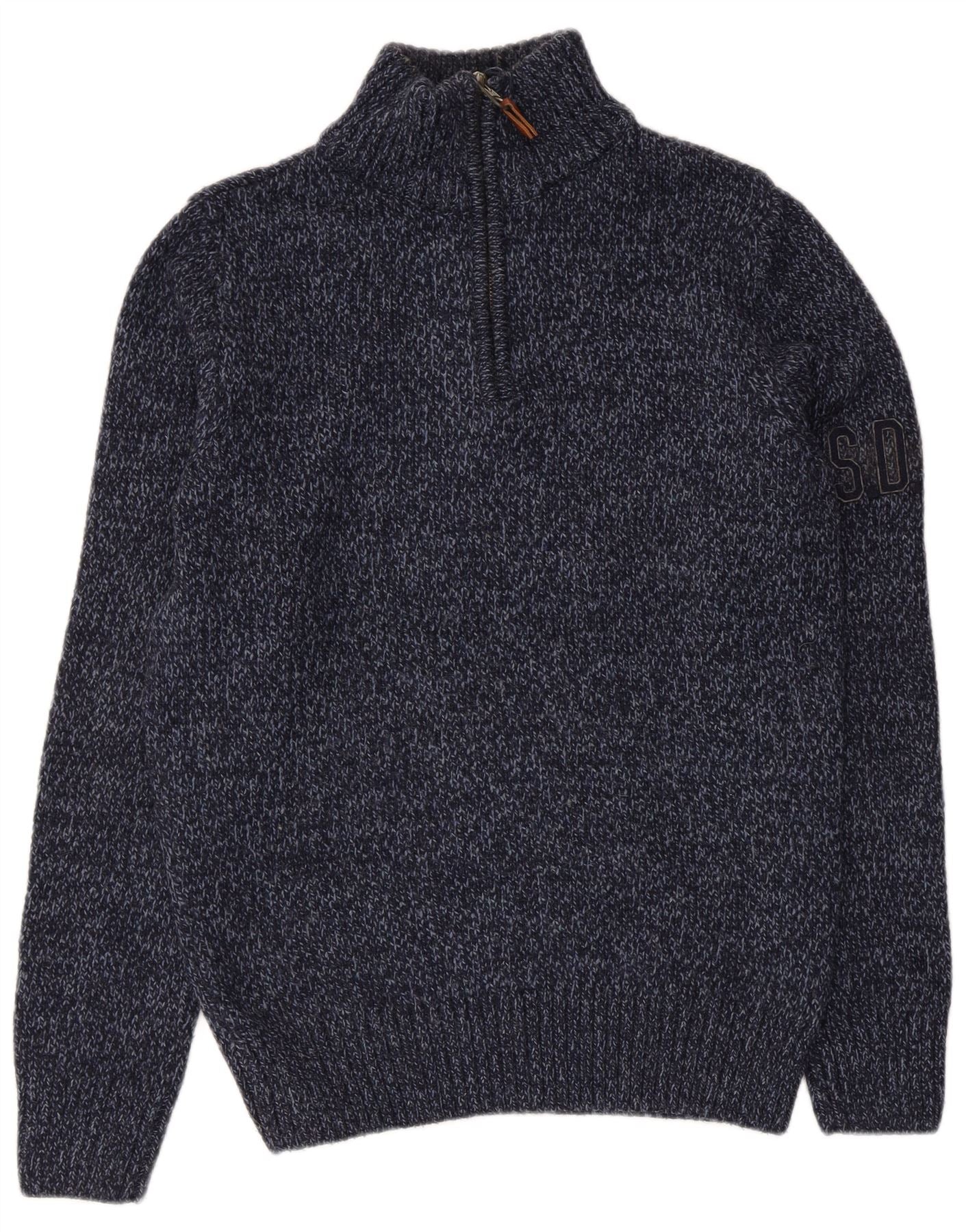 Maglione maglione da donna con zip e collo Superdry UK 14 medio blu navy screziato