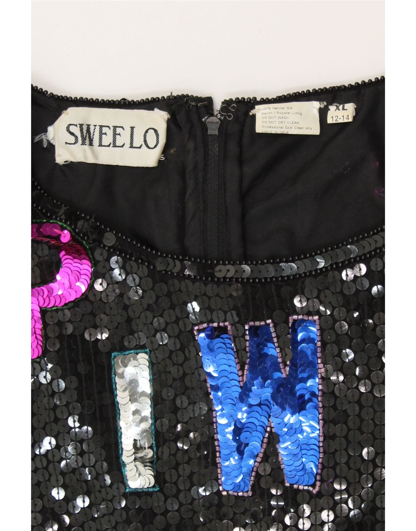 SWEELO Abito tubino grafico da donna UK 18 XL Seta nera