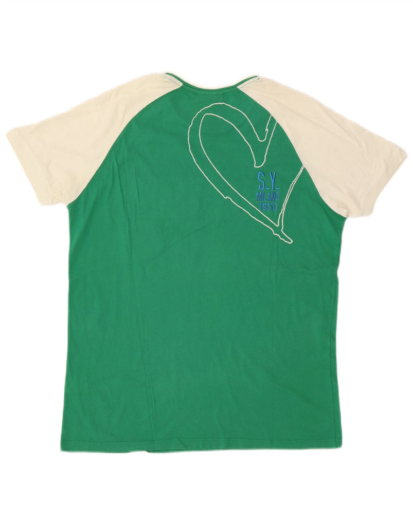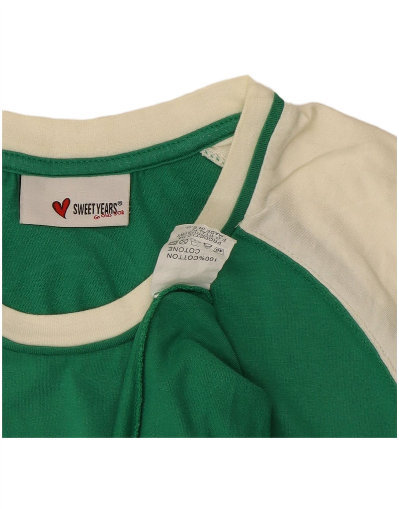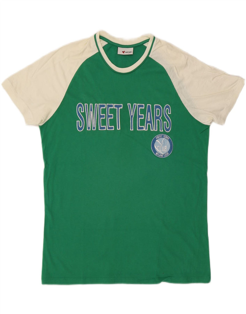 SWEET YEARS Womens Graphic T-Shirt Top UK 18 XL Green Colourblock Cotton